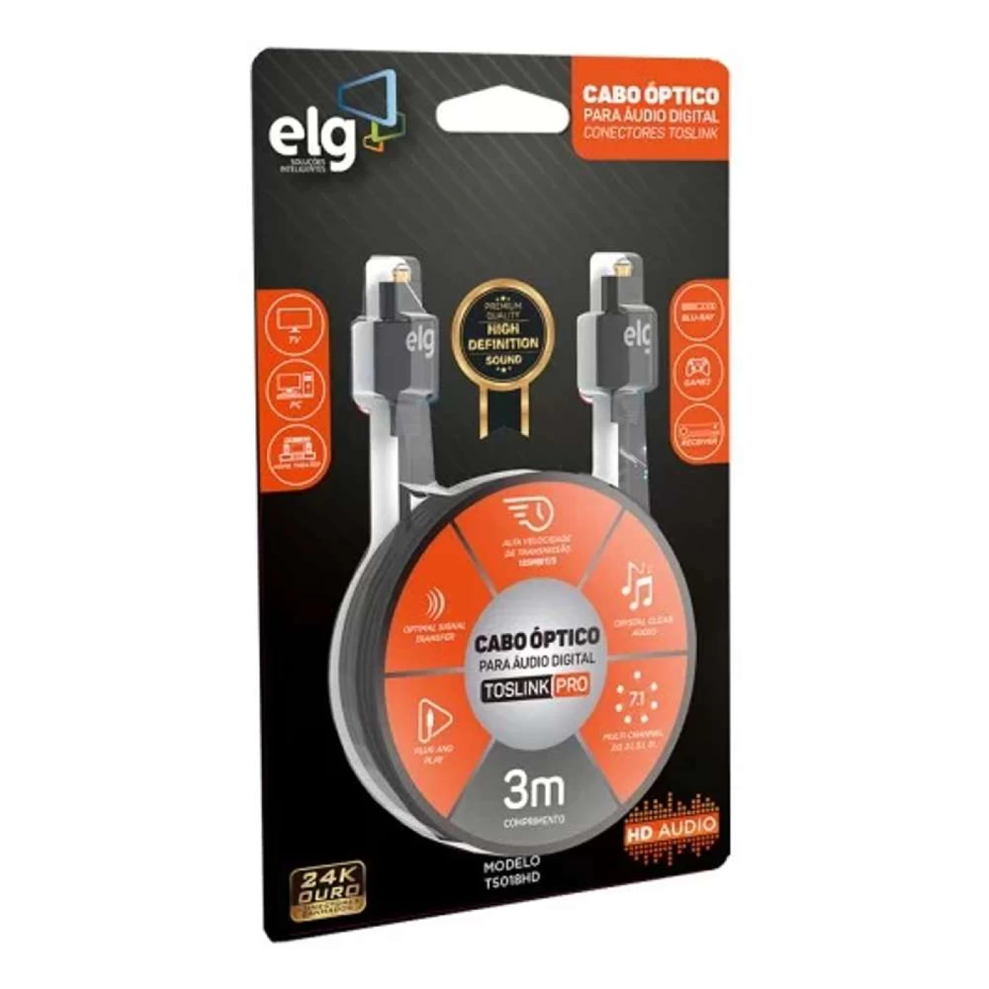 O cabo óptico para áudio digital T5018HD ELG possui conectores toslink com 3 metros de comprimento para facilitar a instalação sem perder a qualidade.