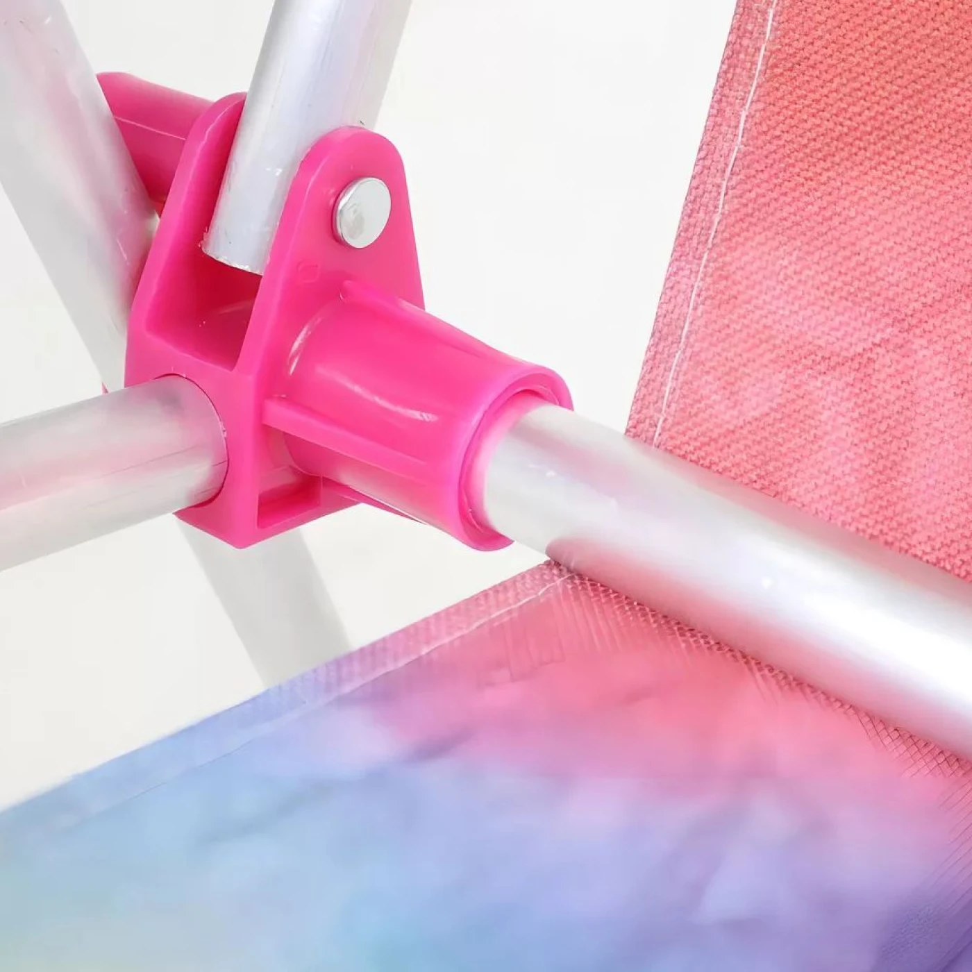 A Cadeira de Praia e Piscina Infantil Alumínio Tie Dye Bel é perfeita para garantir o conforto e diversão das crianças durante os momentos de lazer ao ar livre. Com design dobrável e leve, é fácil de transportar e armazenar, tornando-se ideal para levar em viagens e passeios. Sua estrutura em alumínio proporciona resistência e durabilidade, suportando até 30 kg. O assento é feito de 100% poliéster revestido com PVC, garantindo conforto e fácil limpeza. Com uma única posição, a cadeira é prática e segura para as crianças. Seu lindo acabamento em tie dye rosa traz um toque de estilo e diversão. Aproveite os momentos de sol e água com a Cadeira de Praia e Piscina Infantil Alumínio Tie Dye Bel!