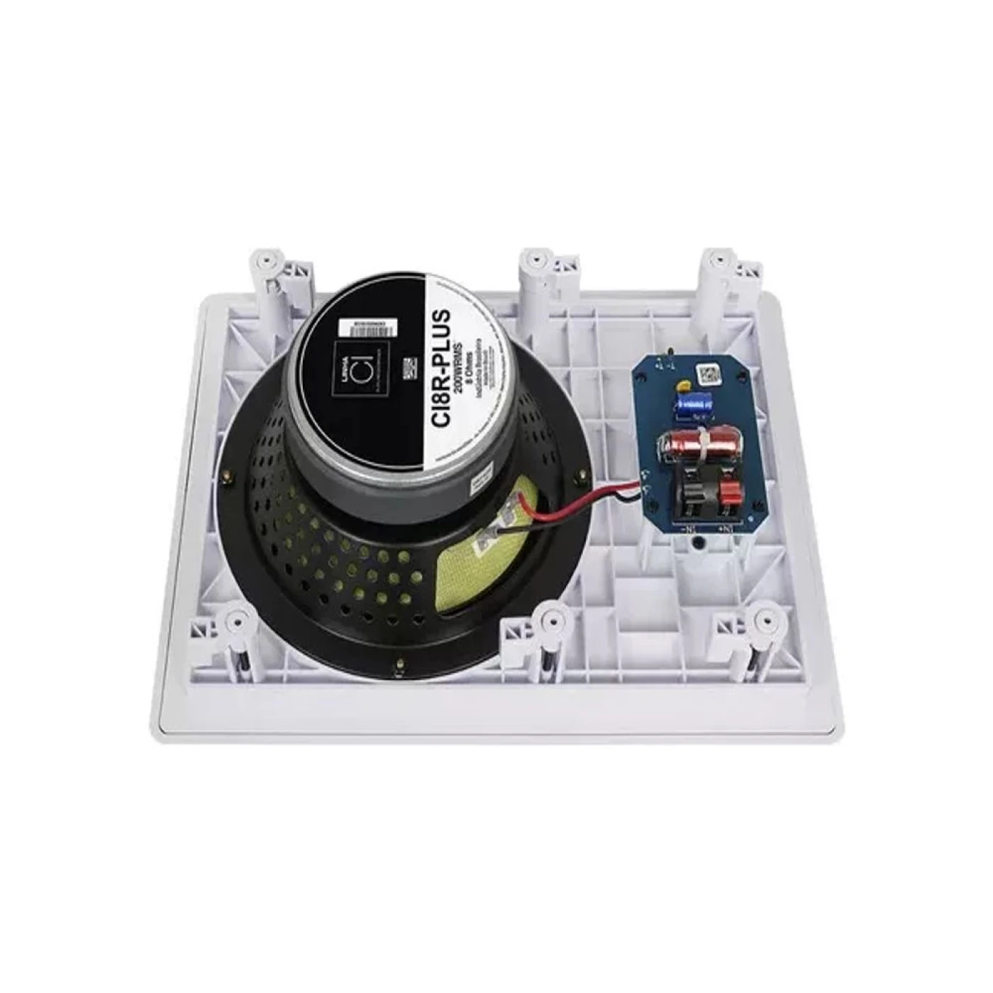A caixa de embutir JBL CIPLUS8R utiliza um alto-falante de 8 polegadas, que oferece uma resposta de frequência ampla e equilibrada, garantindo a reprodução precisa de graves profundos, médios claros e agudos detalhados. Ela é projetada para fornecer uma dispersão sonora uniforme, cobrindo uma área ampla com qualidade sonora consistente.
