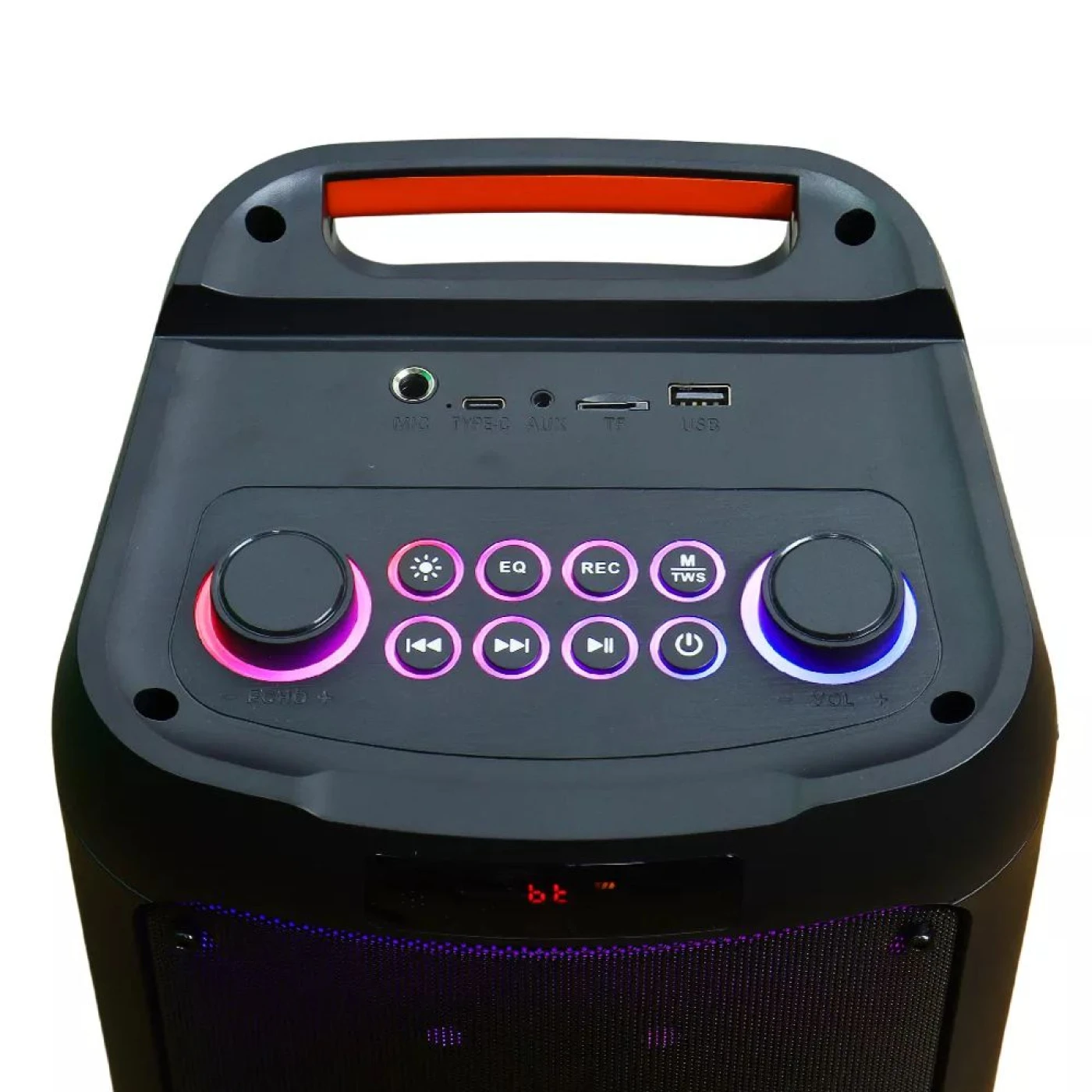 Conectividade Versátil: Bluetooth, rádio FM, entradas para cartão TF, auxiliar, USB e microfone, oferecendo diversas opções para sua música.