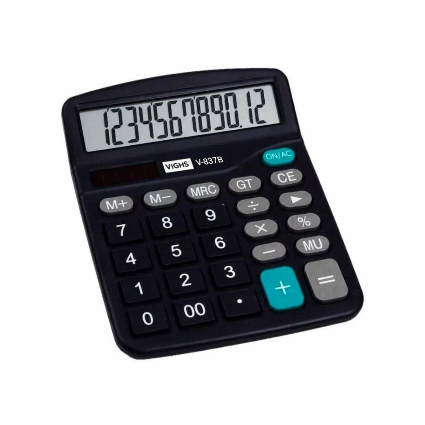 A calculadora V837B da Vighs funciona atraves de uma pilha AA. Este produto é para ser utilizado em cima de uma mesa, seu visor LCD é inclinado justamente para ter a melhor visualização possível enquanto estiver sentado. Algumas operações básicas são; auto off, porcentagem, raiz quadrada e a tecla de retorno.