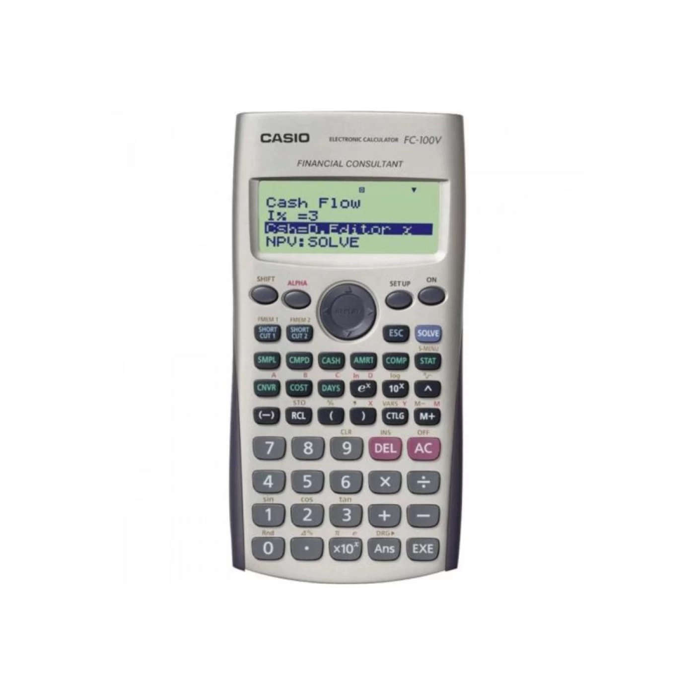 A linha de calculadoras Casio facilita o seu dia a dia em casa, no trabalho e na faculdade. Fáceis de usar, precisas e seguras, as calculadoras financeiras Casio estão desenhadas para estudantes e profissionais, e oferecem excelente rendimento em todos os níveis por muitos anos. Inúmeras funções como: juros simples, juros compostos, análise de investimento (Fluxo de Caixa), amortização, estatística e regressão, conversão de Taxas de Juros entre outras. De fácil uso e desenhada para adaptar-se aos seus desafios, a FC-100V se encarrega dos problemas mais difíceis.