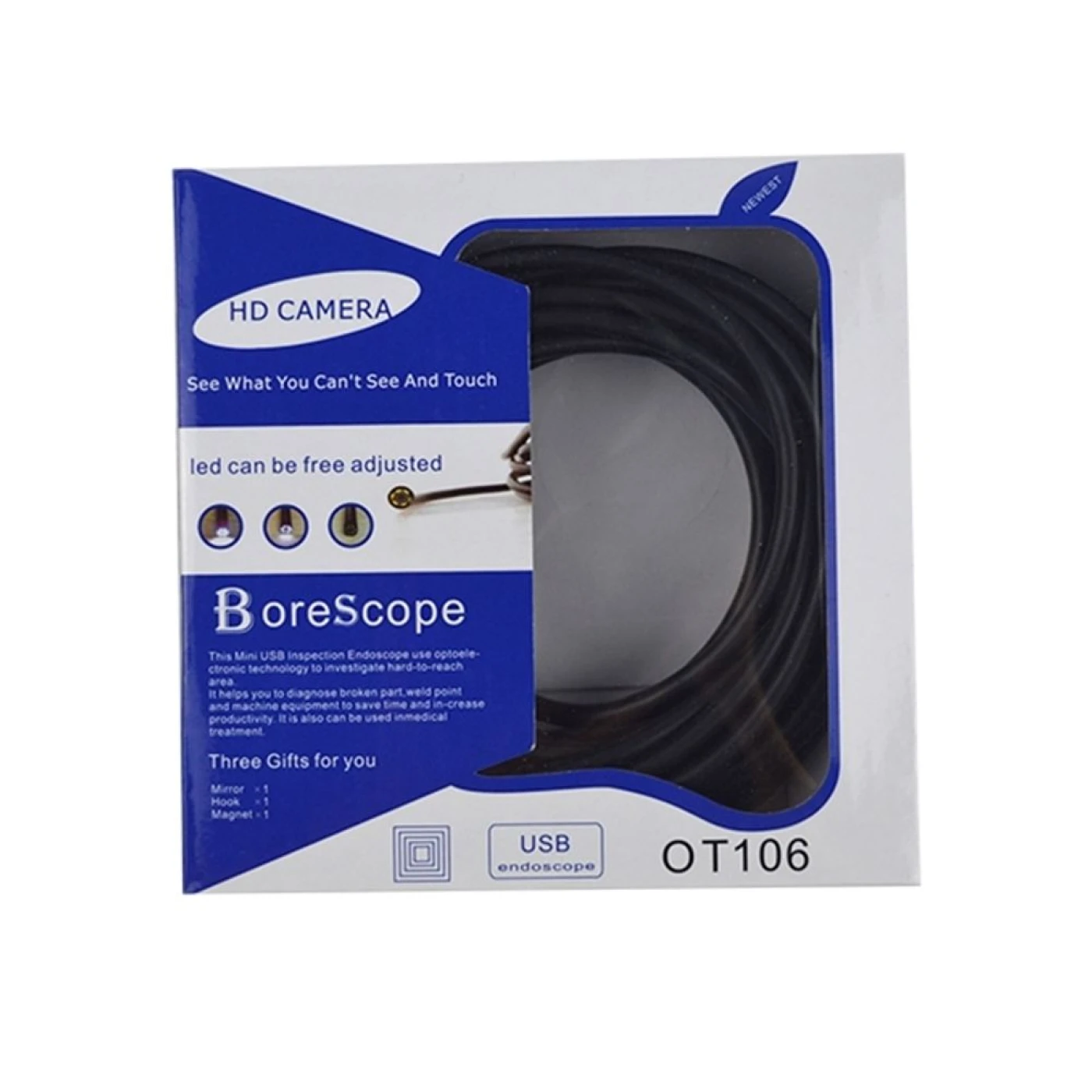 Explore e inspecione com facilidade com a Câmera HD Boroscope OT106, uma ferramenta essencial para profissionais e entusiastas. Esta câmera boroscópio de alta definição é ideal para inspeções em locais de difícil acesso, oferecendo imagens nítidas e detalhadas através de sua conexão USB.