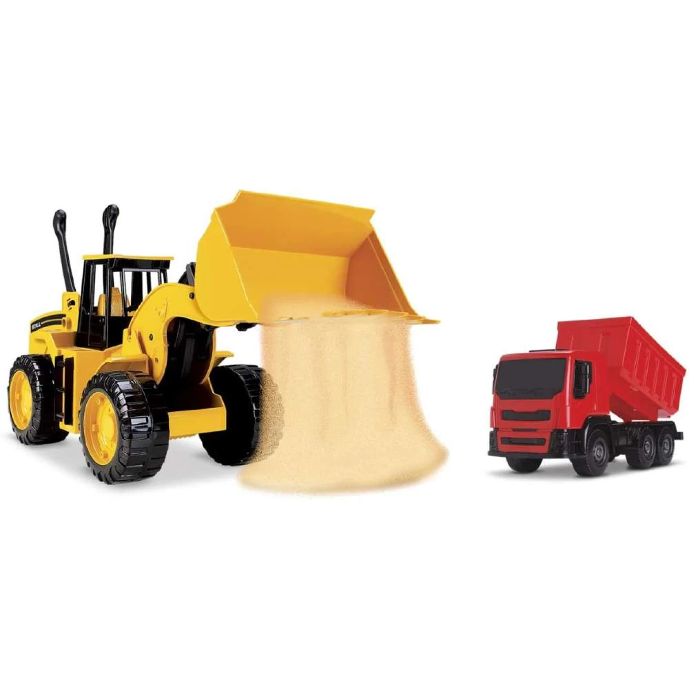 A carregadeira tem articulação da pá e braço