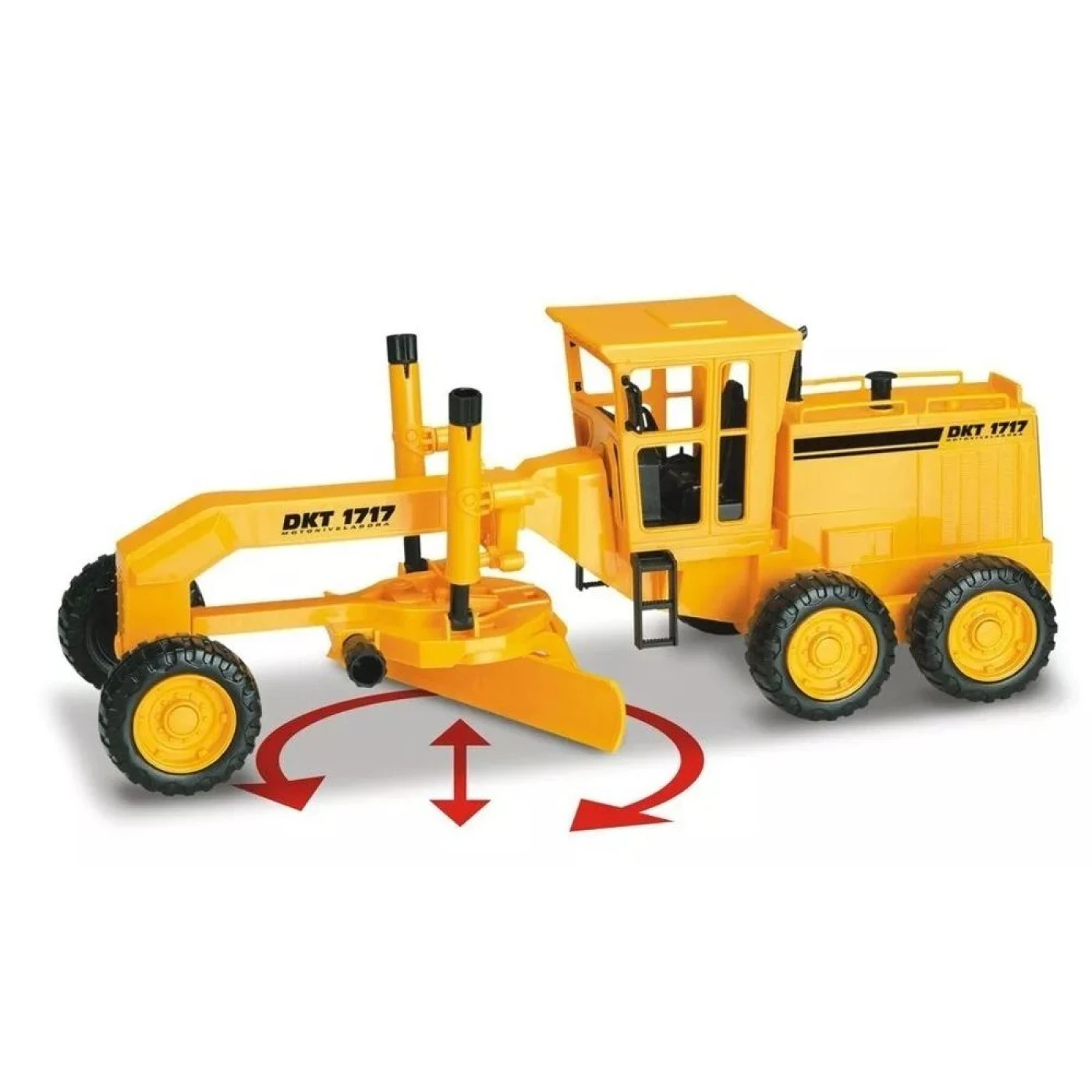 Tamanho Motoniveladora: 40cm de comprimento, 14cm de largura e 15cm de altura.