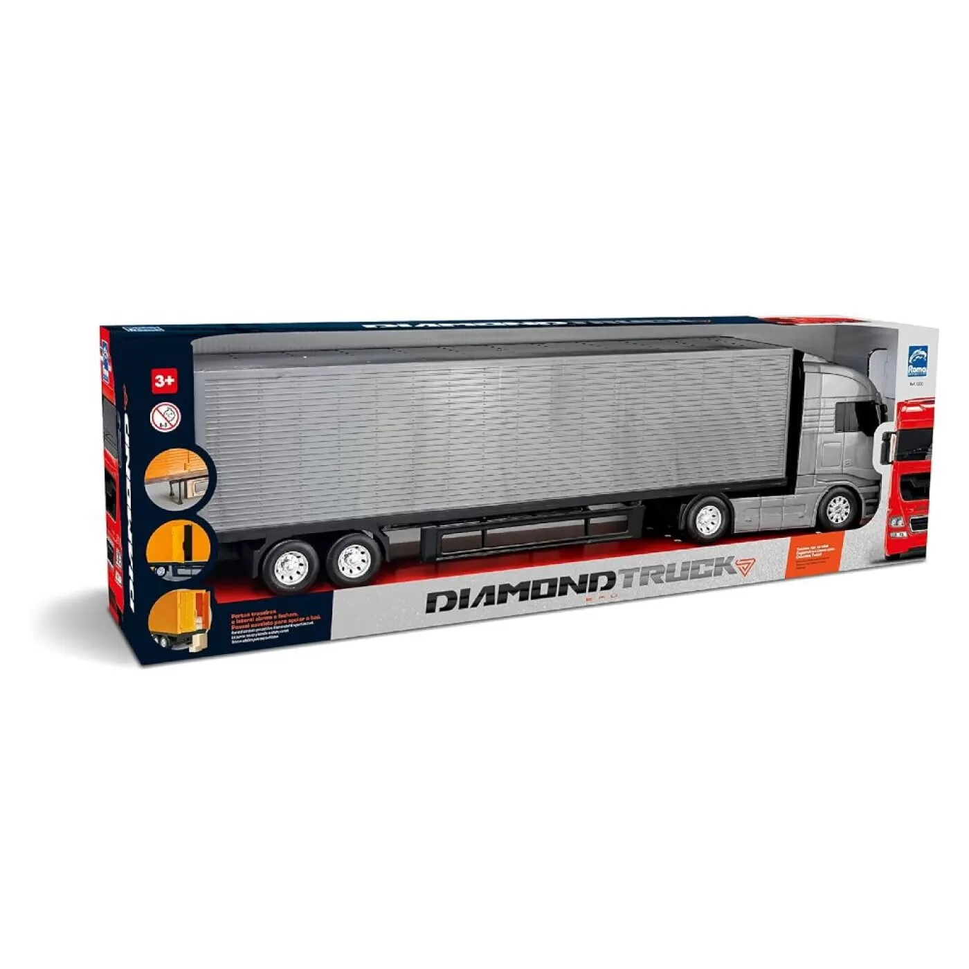 O Caminhão Diamont Truck Baú Possui Rodas Livres, Giro Da Cabine Livre, Cavaletes Montáveis Para Apoiar O Baú E Sua Carroceria Encaixa E Desencaixa Na Cabine A Porta Traseira E Porta Lateral Do Baú Abre E Fecha Com Encaixe Estimula A Brincadeira De Faz De Conta Onde As Crianças Criam E Representam Papéis Do Mundo Adulto Estas Atividades, Além De Favorecer A Aprendizagem De Papéis Sociais E Formas De Organização Social, Provoca Intensa Movimentação Corporal (Coordenação Manual E A Coordenação Motora) Pelo Espaço Quando Empurram E Movimentam O Caminhão