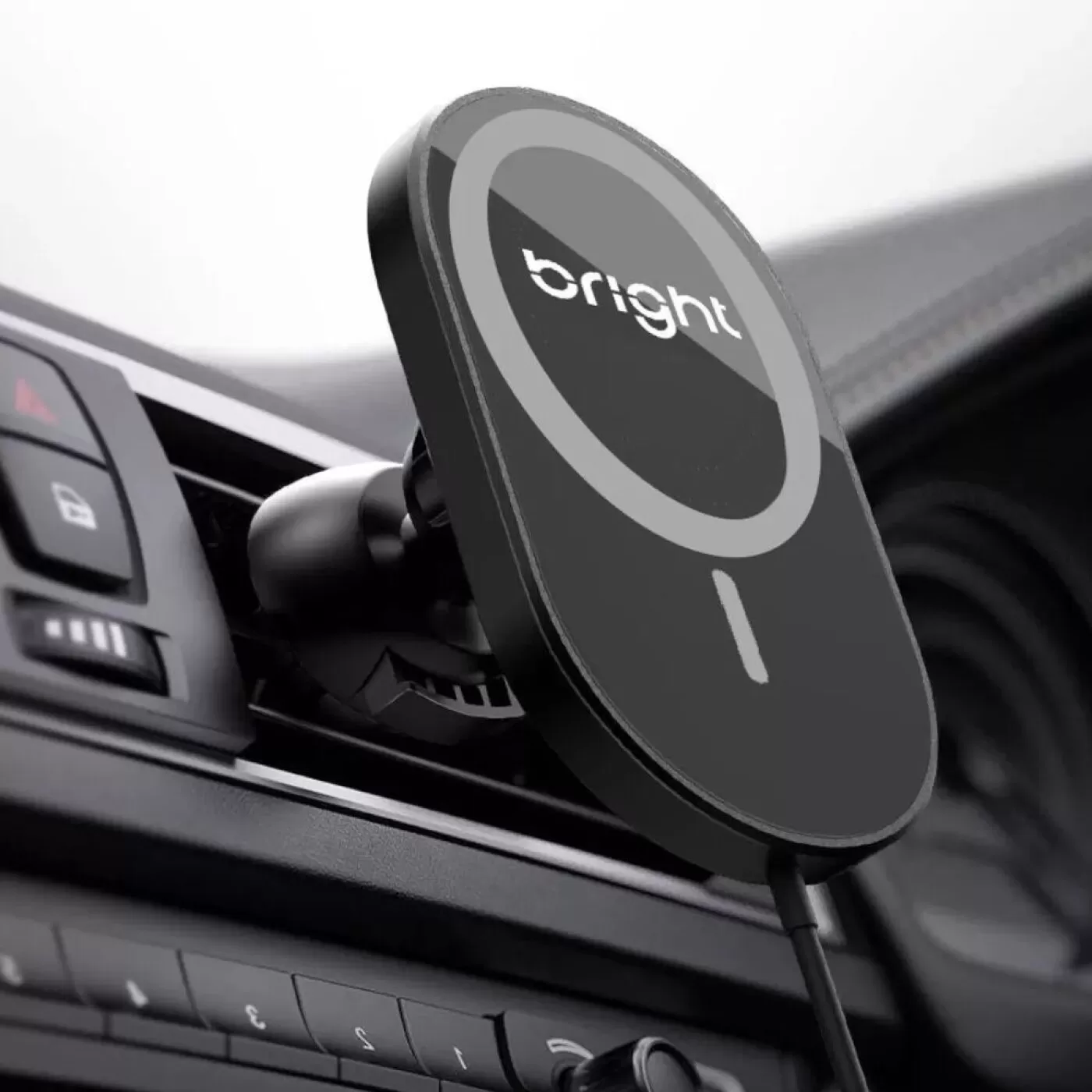 O Carregador ultra rápido veicular Bright é ideal para o dia a dia, com carregamento por indução e suporte magnético para seu celular nunca te deixar na mão.