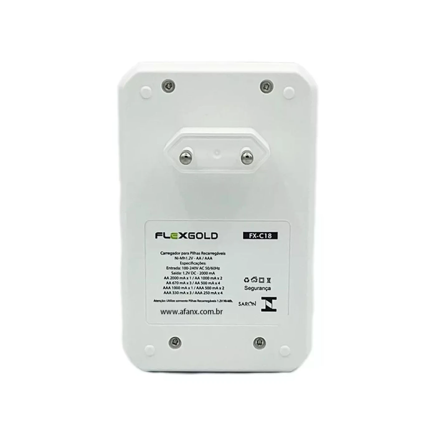 Carregador Ultra Rápido para pilhas recarregáveis AA/AAA, com Display digital Desligamento automático, FlexGold.