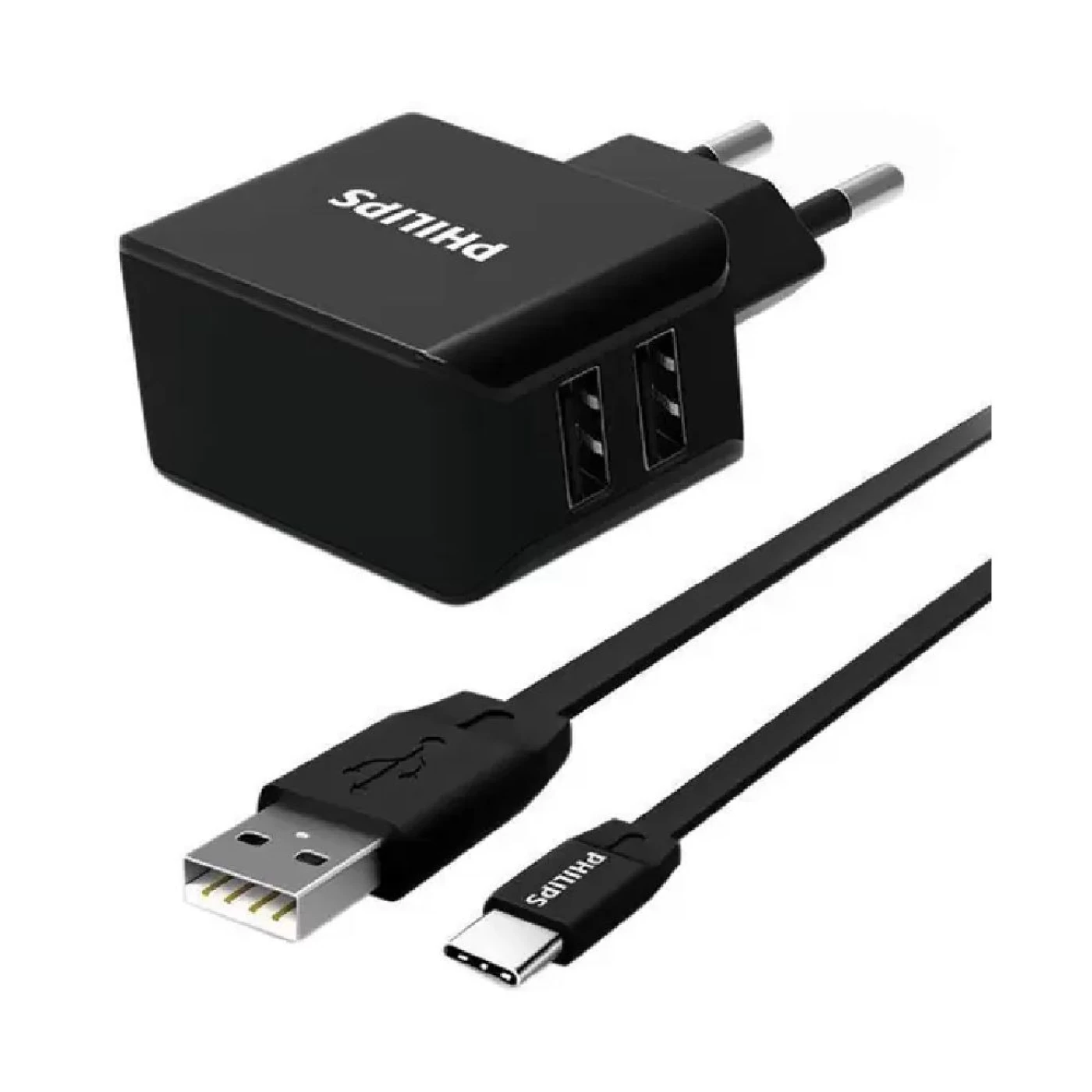 Carregador de tomada ultra fast c/2 usb c/cabo usb-c philips 15.5w dlp2502c/97