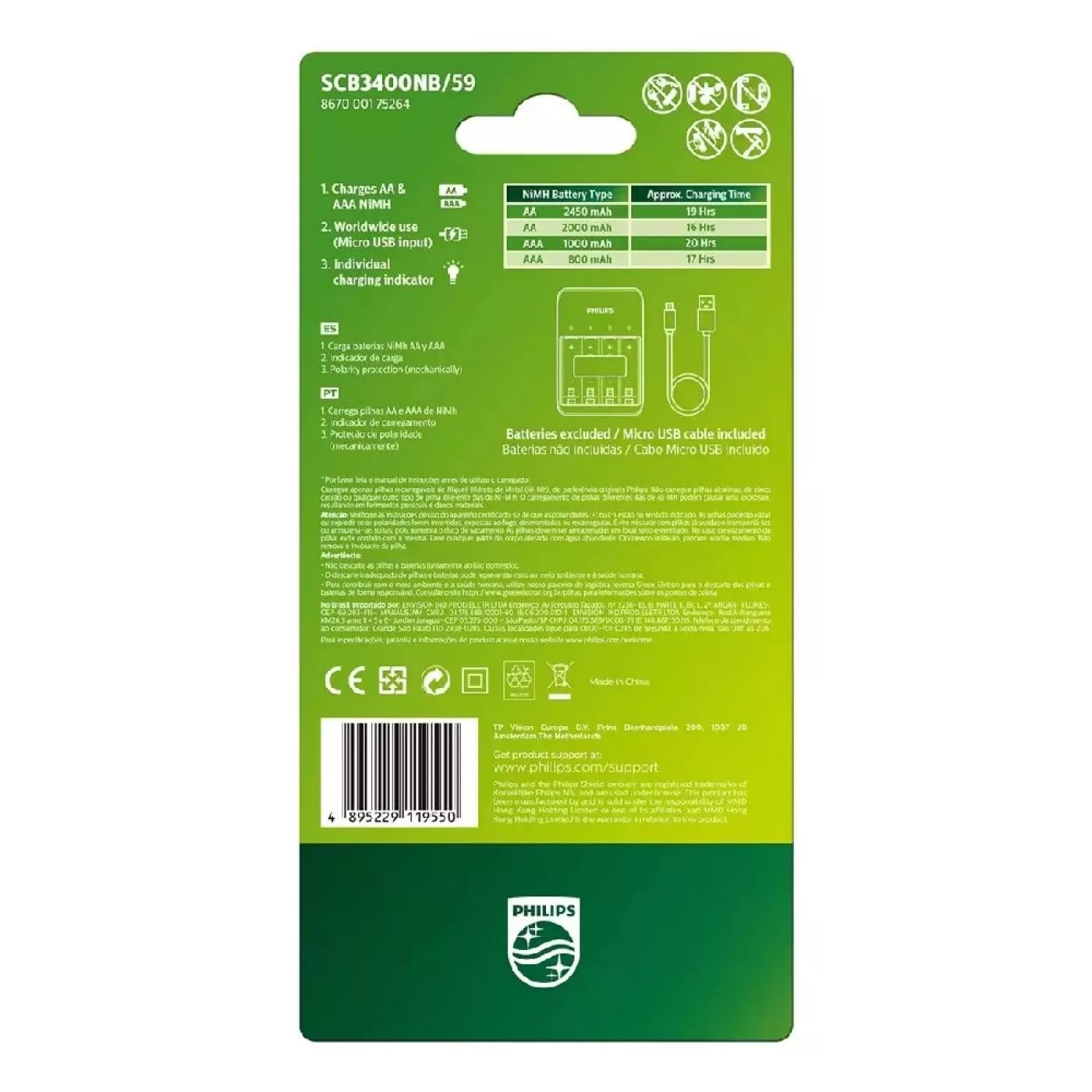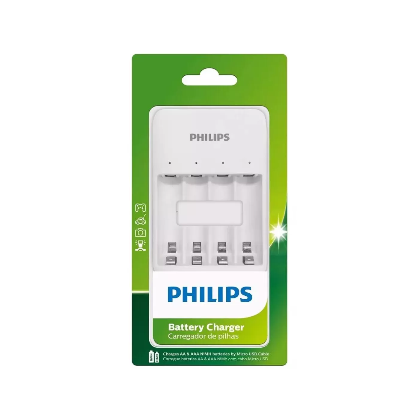 Portátil e USB, o Carregador da PHILIPS é próprio para pilhas recarregáveis formato AA e AAA, economize tempo, com ele você pode recarregar até quatro pilhas de cada formato de uma só vez. Ideal para viagens e eventos onde você não pode se preocupar em gastar pilha.