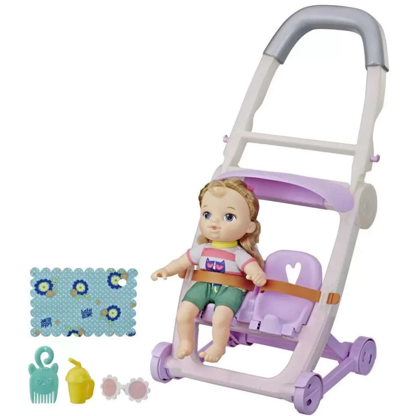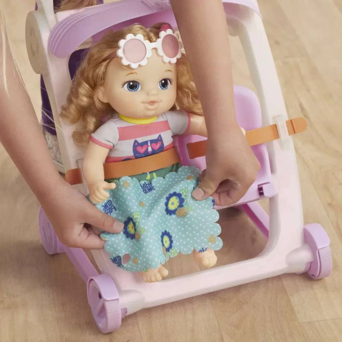 Divirta-se com o Carrinho de Boneca Baby Alive Littles, Desdobre, prepare-se e vá para uma aventura de brincar com a Baby Alive! Quando as crianças empurram a boneca em seu adorável carrinho de boneca, suas pernas chutam para cima e para baixo como uma criança de verdade! Meninos e meninas podem imaginar levar sua boneca para onde quiserem! O melhor é que este carrinho de criança tem espaço para um amigo, para que as crianças possam colecionar outras bonecas no esquadrão Littles da Baby Alive! (Os bonecos adicionais são vendidos separadamente.) O carrinho e o carrinho de boneca vêm com tudo o que as crianças precisam para tornar as aventuras de brincadeiras ainda mais divertidas, incluindo um pente para pentear os belos cabelos, um cobertor para aconchegar, óculos de sol da moda para dia e noite, e um acessório de copo com canudinho quando ela está com sede!