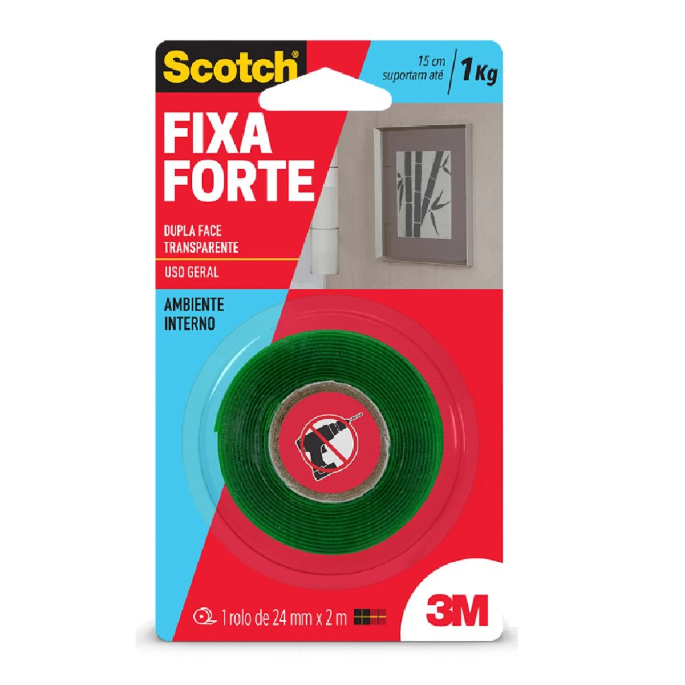 A Fita Dupla Face 3M Scotch Fixa Forte é a solução mais prática para fixar de forma permanente quadros, espelhos e peças de decoração.é ideal para fixar objetos em superfícies que exibam a fita aplicada, como vidro e acrílico. Sua aplicação é fácil, evitando furos e sujeira.