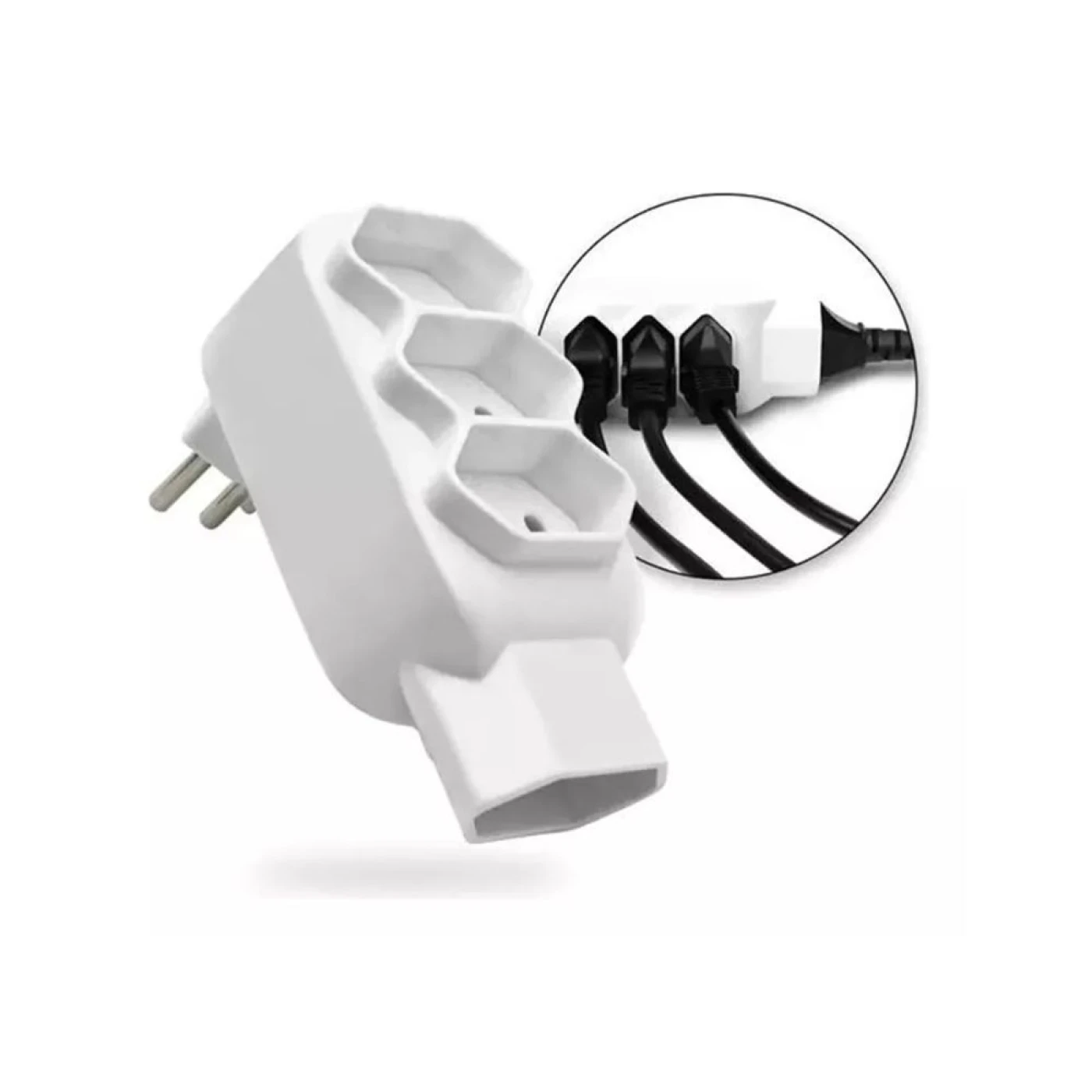 Adaptador Benjamin Tripolar com 4 saídas para plugues de 2 ou 3 pinos conforme ao Padrão Brasileiro NBR14136.