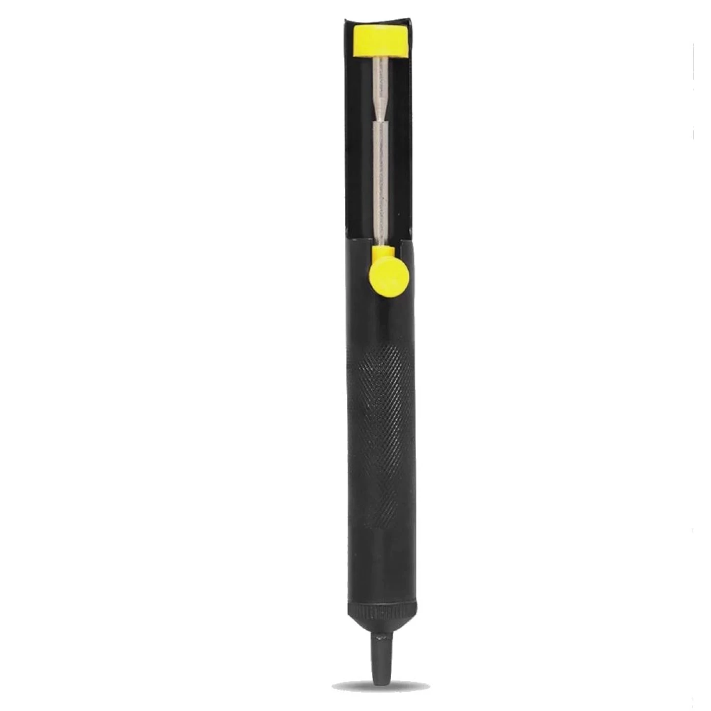 Sugador de solda HK-190 é ideal para substituição de componentes em placas de circuito impresso e pequenos protótipos. Basta pressionar o embolo superior e pressionar o botão lateral sobre a solda aquecida para removê-la através de sucção. O sugador conta com bico de teflon e corpo de alumínio. Ele auxiliará a remoção da solda com praticidade e eficiência.