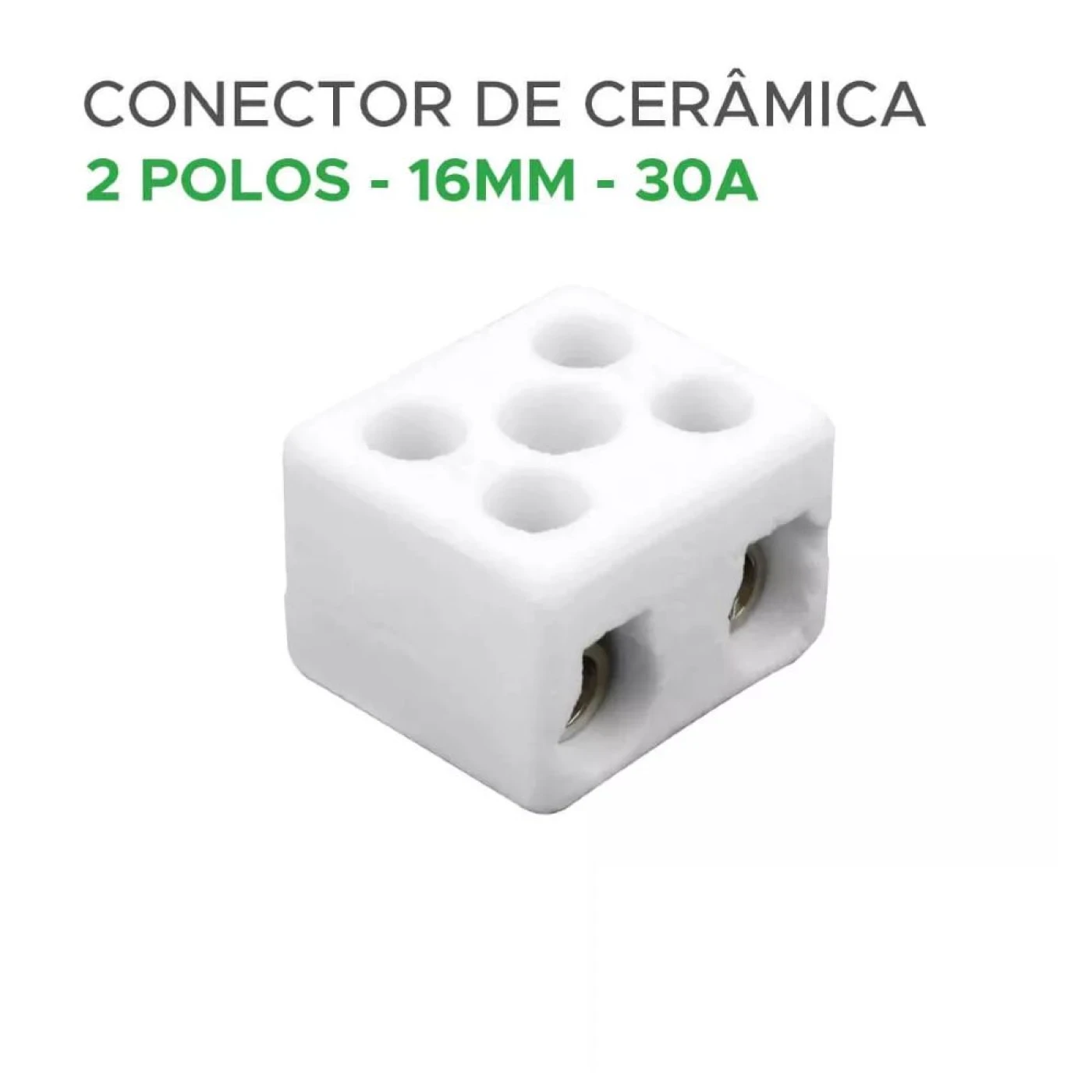 Conector Bipolar Cerâmica Para Chuveiro 2 Polos 16MM 30A