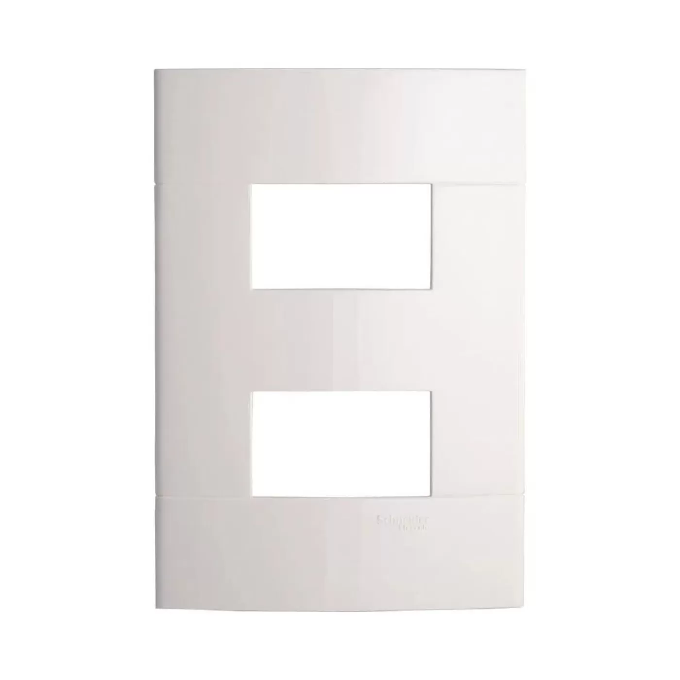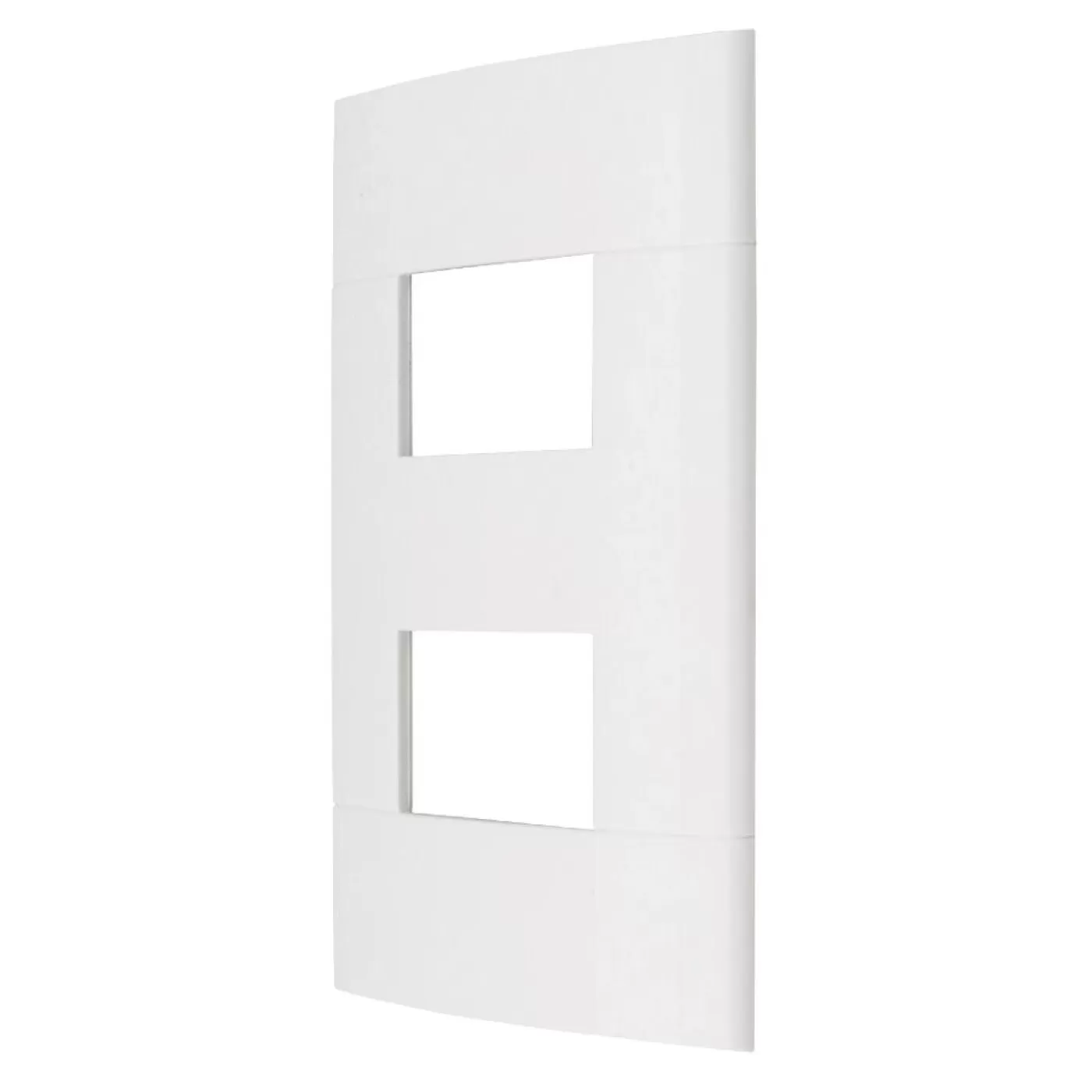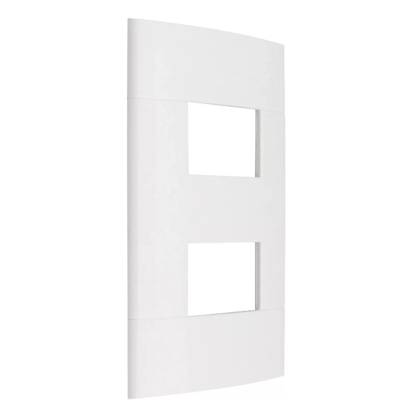 Com dimensões padrão de 4x2, a placa é projetada para acomodar dois módulos, proporcionando flexibilidade na instalação de interruptores, tomadas e outros componentes elétricos. Sua cor branca confere um aspecto clean e versátil, adaptando-se facilmente a diferentes estilos de decoração.