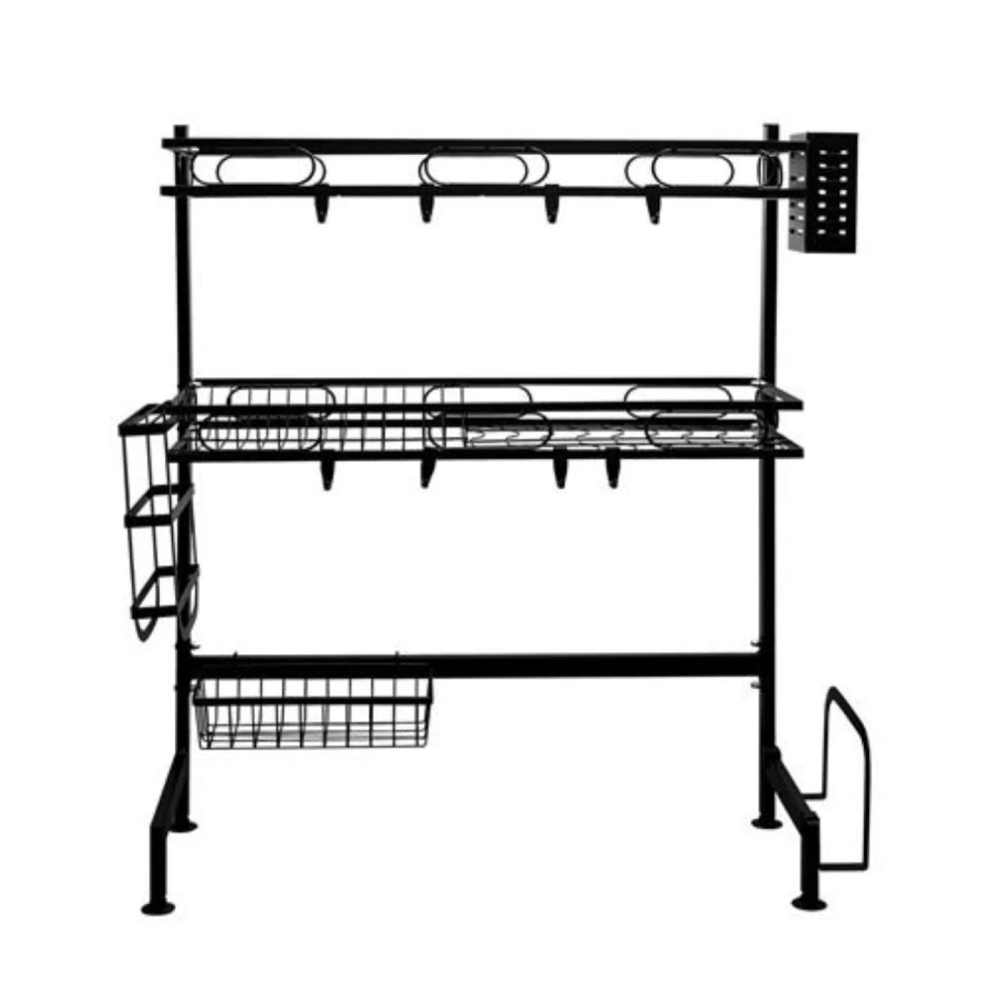 Escorredor de louça PremiumCom 2 andares e ajuste de altura, possui uma enorme capacidade de armazenamento e foi desenvolvido para quem tem pouco espaço na pia da cozinha, é prático e facilita sua organização.Conta com design moderno, é confeccionado em aço inoxidável na cor preta epóxi, trazendo sofisticação e durabilidade ao item, além de deixar sua cozinha ainda mais bonita.