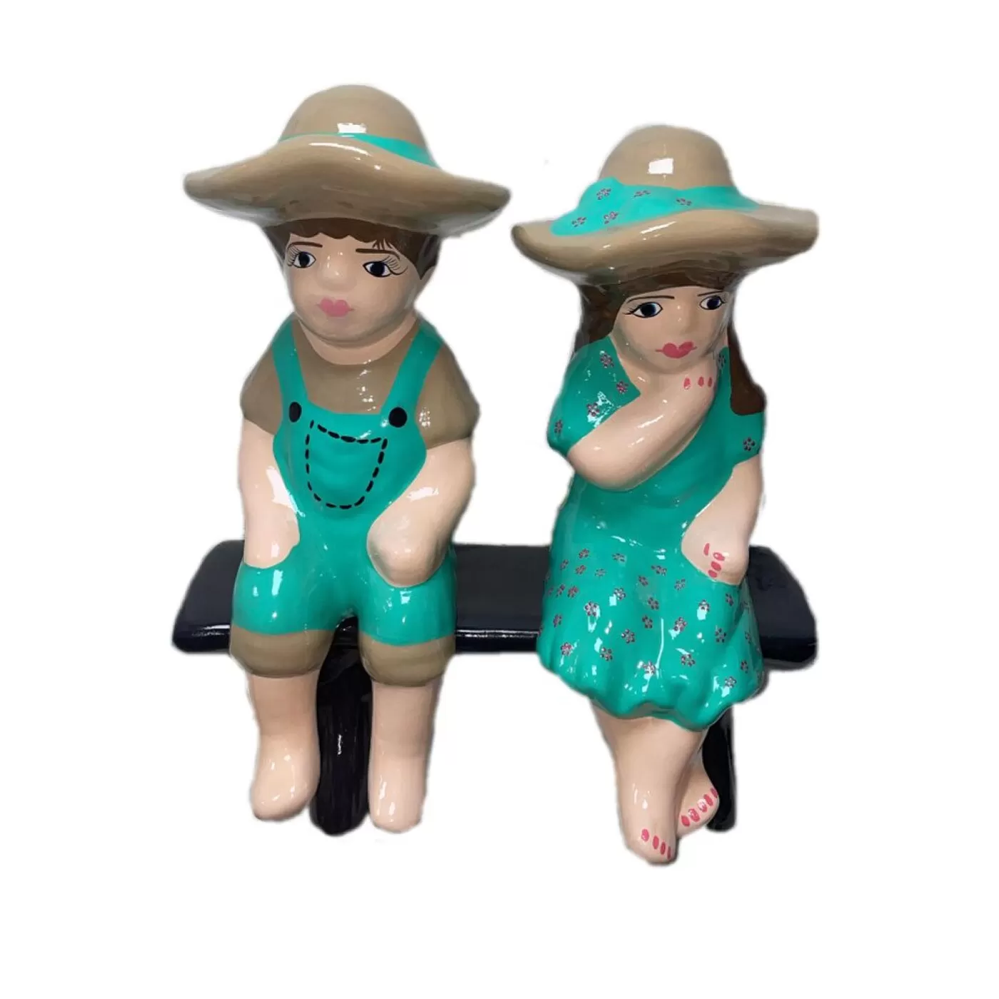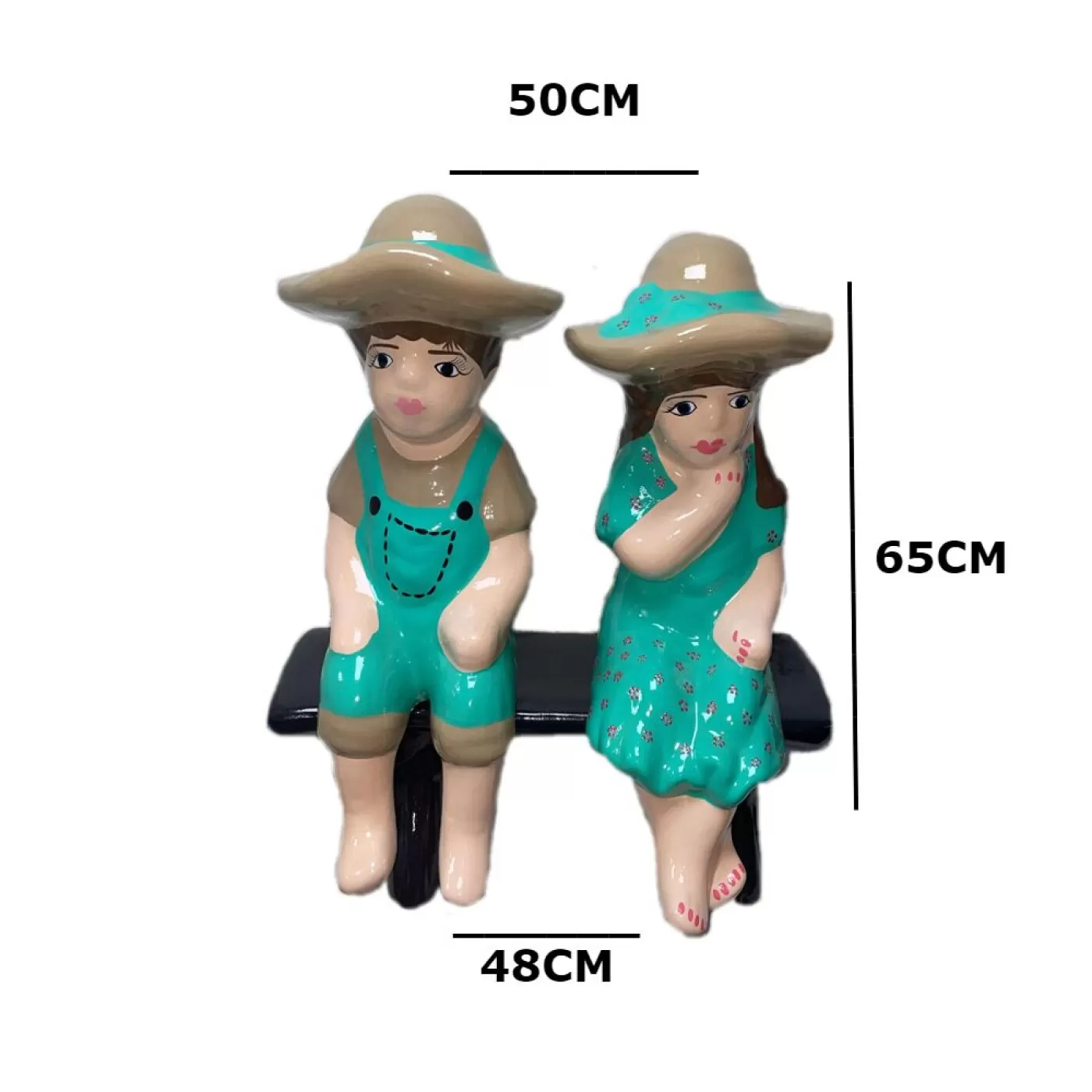 Celebre o amor e a conexão com esta encantadora estátua de casal sentado no banco, feita em cerâmica artesanal. Esta peça sofisticada captura a ternura e a intimidade de um momento compartilhado, trazendo um toque romântico e elegante à sua decoração.