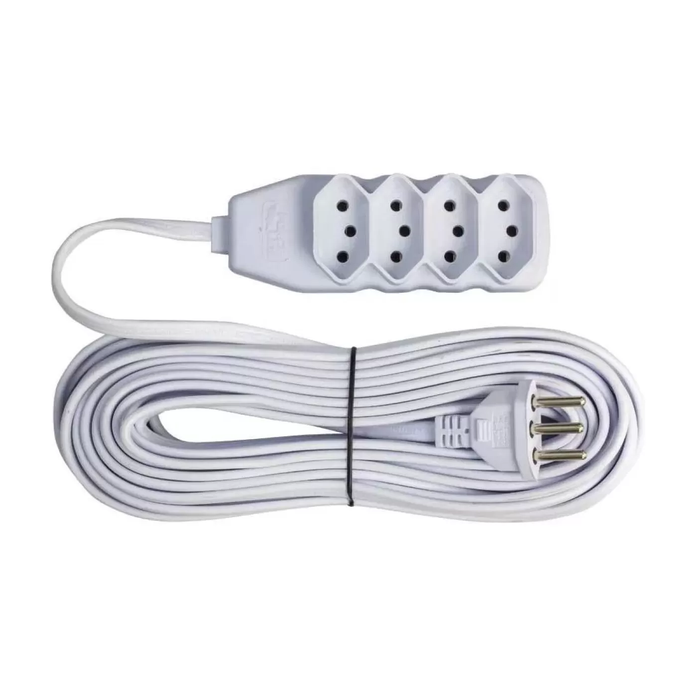 Extensão Tripolar 4 Tomadas 10A 10M Slim Branca - Force Line
