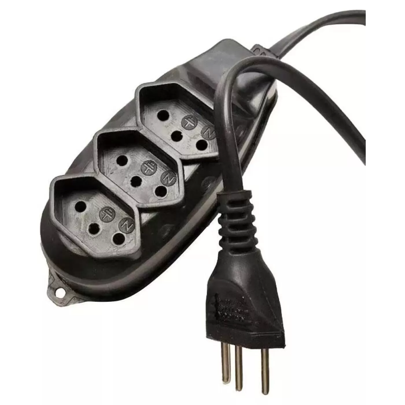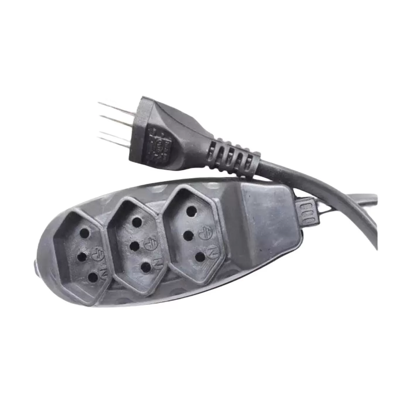 As três tomadas, distribuídas ao longo do cabo, facilitam a conexão simultânea de múltiplos dispositivos elétricos, aumentando a praticidade e a versatilidade do sistema. Isso é especialmente útil em ambientes onde há uma demanda por diversas fontes de energia em pontos distintos.
