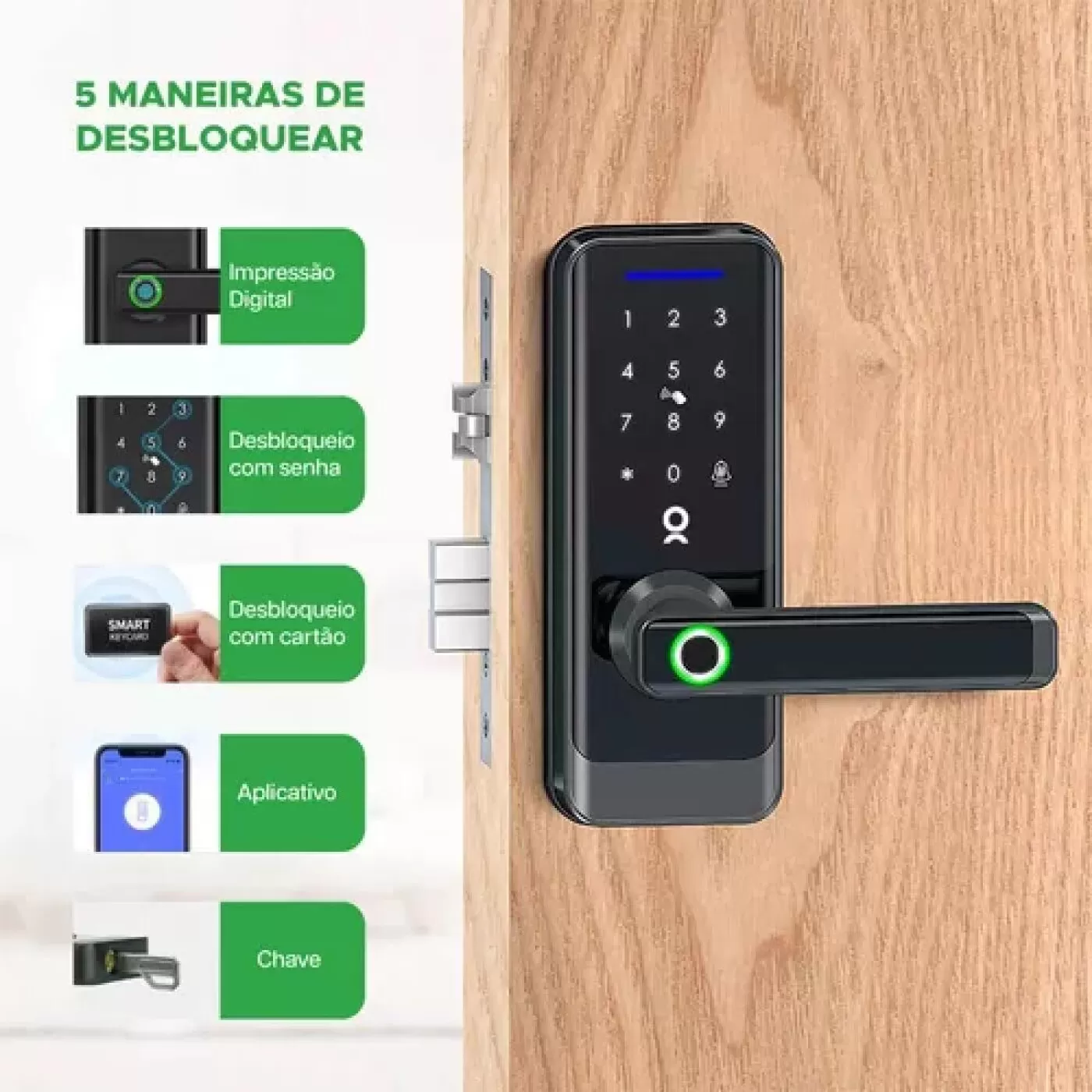 A Fechadura Digital FD-5000 da Mixtou é a mais completa do mercado, com 5 formas de acesso, cadastro para até 300 usuários e 9 administradores, trava de segurança "Não Perturbe" e campainha integrada. Compatível com o aplicativo Tuya App disponível para Android e i OS.