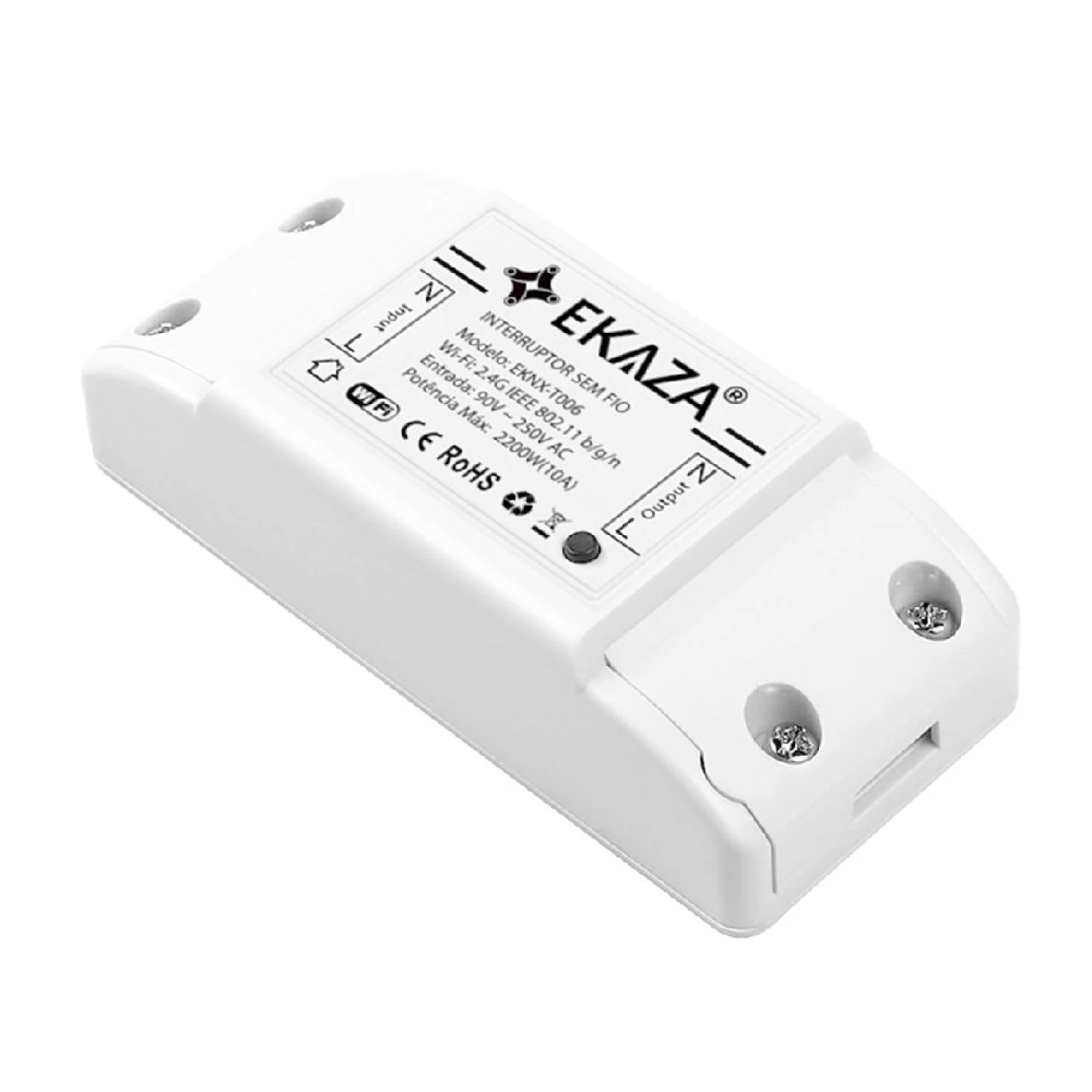 O Interruptor de 4 canais da Ekaza é um dispositivo IOT que é capaz de controlar outros equipamentos, remotamente, através de uma rede com tecnologia WIFI. Com ele, é possível realizar o acionamento de até 4 circuitos de elétricos que estejam ocupados por iluminação, tomadas ou diretamente ligados a equipamentos, isso por meio do App ou assistentes virtuais de voz. Seu modelo com tamanho reduzido e acabamento refinado, pode ser integrado aos quadros de distribuição com muita praticidade, pois já possui os suportes para acomodação em trilhos mantendo a organização dos cabos e facilitando a manutenção.