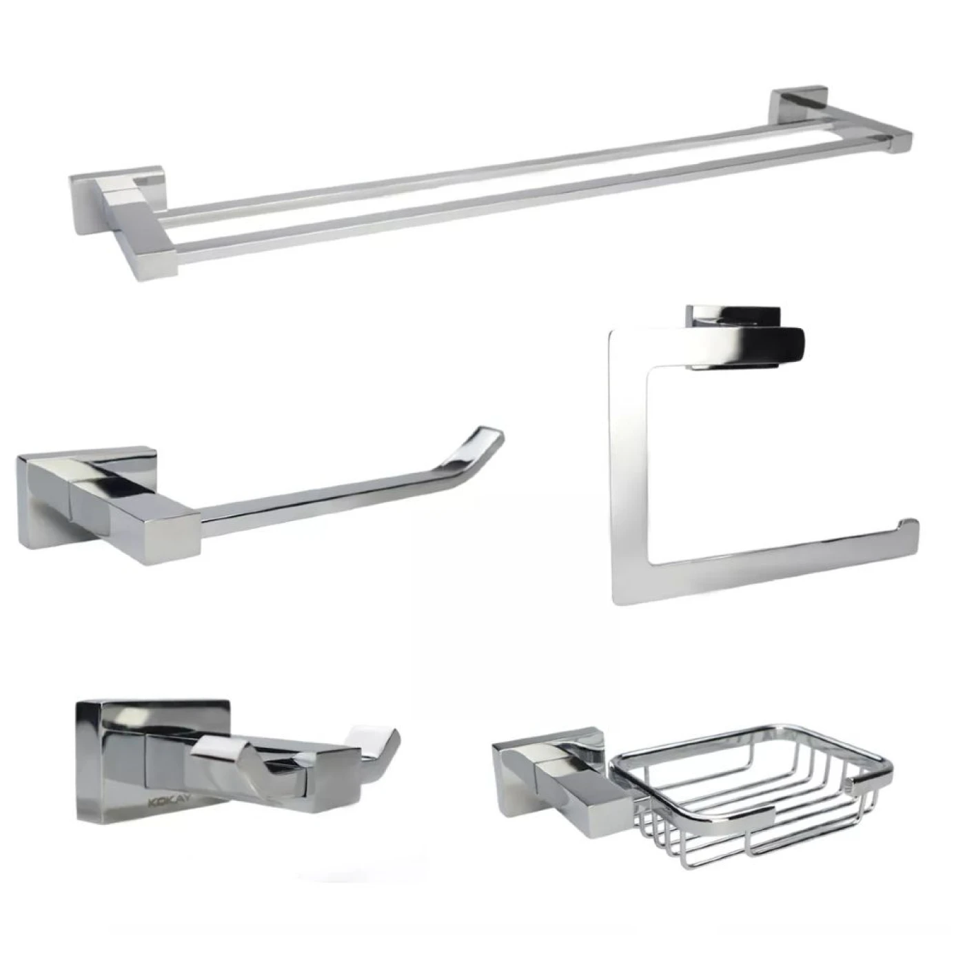 O kit acessórios para banheiro e lavabo da KOKAY é a opção ideal para quem valoriza elegância e praticidade. Composto por 5 peças, este conjunto é fabricado em aço inoxidável de alta qualidade, garantindo durabilidade e resistência à corrosão.
