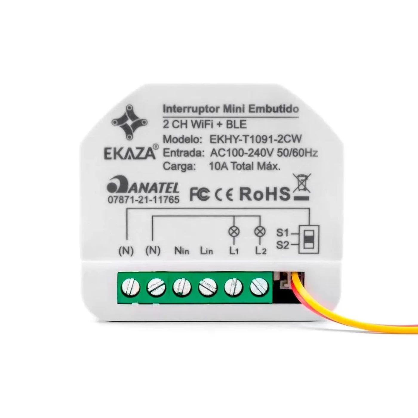 Modulo Interruptor Mini Embutido 2 Canais Zigbee Ekaza