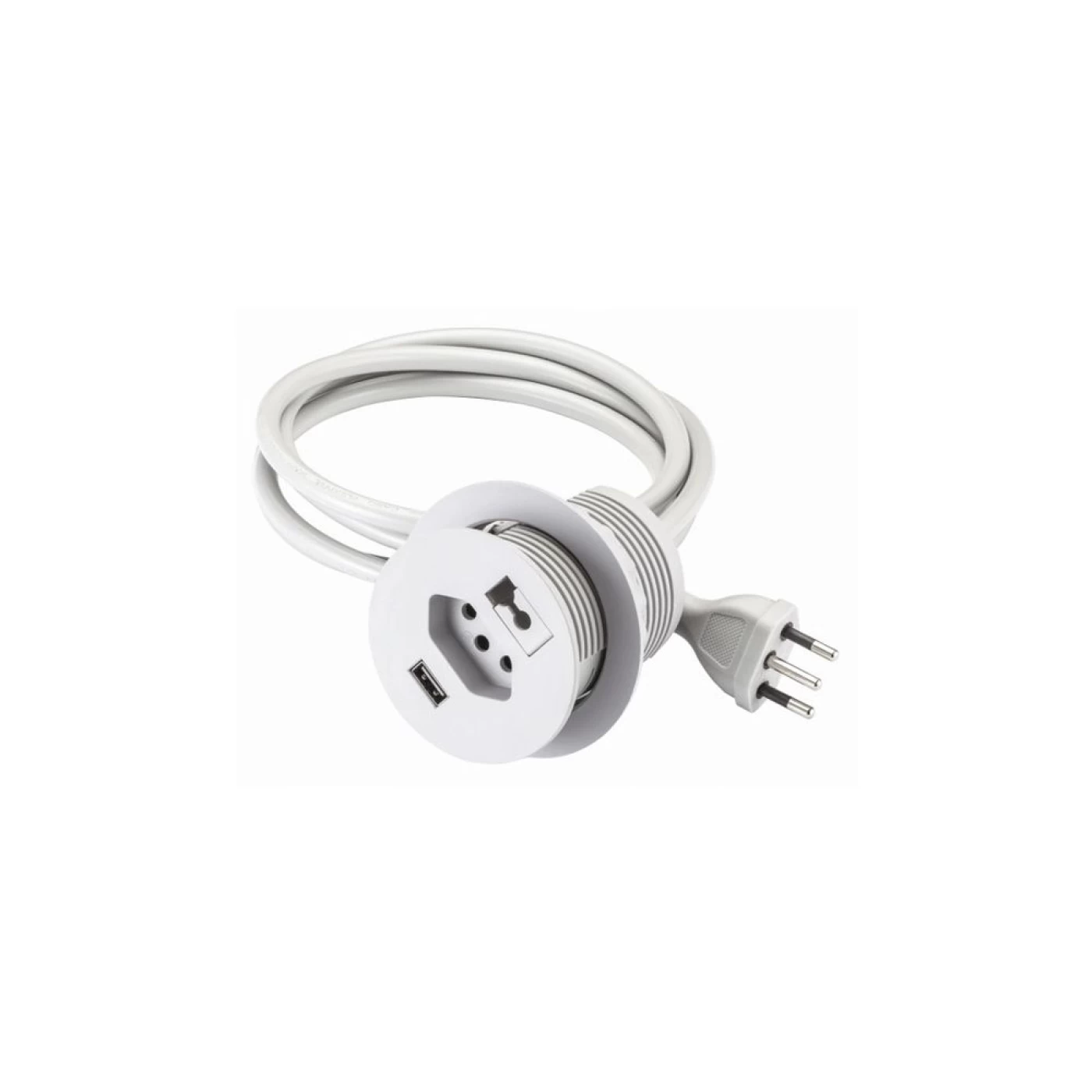 Tomada passa fio com USB, carregamento ultrarrápido e tomada padrão brasileiro (de acordo com a NBR14136).