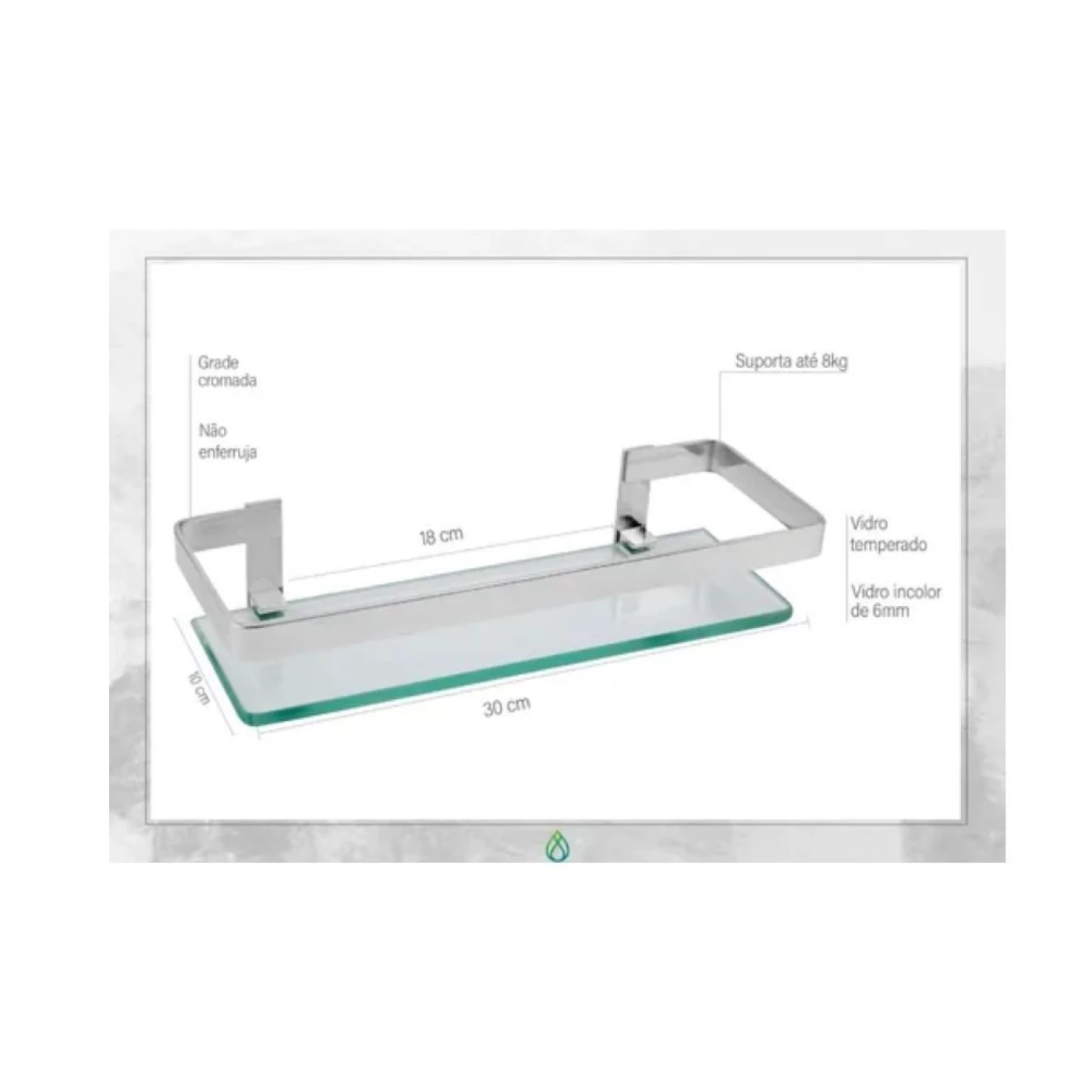 Porta Shampoo Reto Quadrado De Vidro 30cm Life Metais