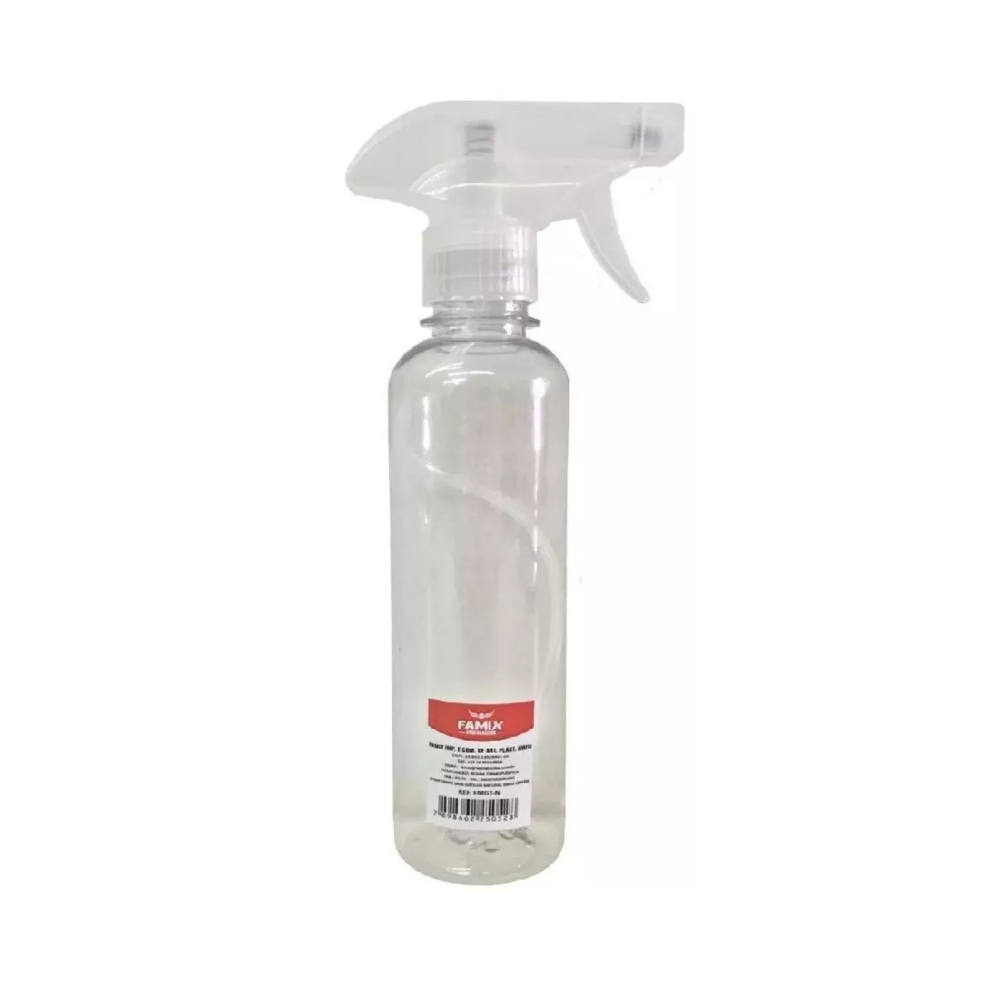 O pulverizador da Famix possui capacidade de 300ml, ideal para líquidos, como álcool, sabonete entre outros.