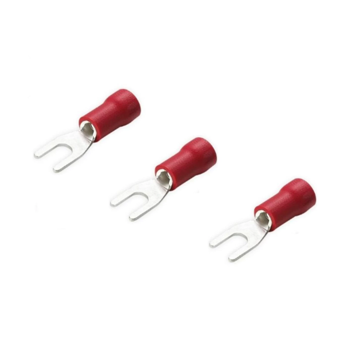 Modelo: Terminal Pré-Isolado Tipo Forquilha - Cabo 1,5mm² - Vermelho - Forquilha 4,3 mm – SVS 1.25-4 - Pacotes Com 100 Peças