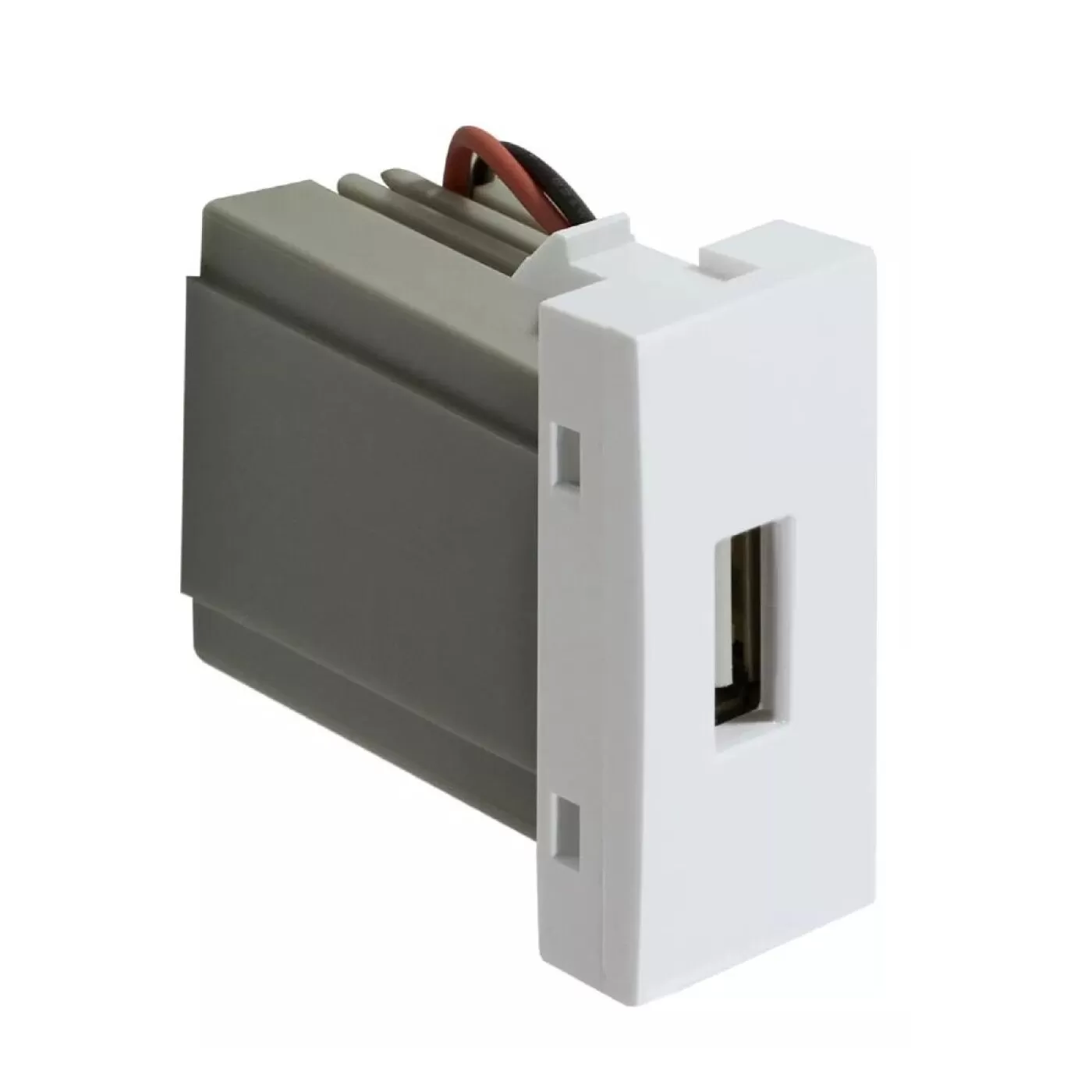 Módulo Tomada USB 2 amperes aplicável em redes de até 250 Volts com a função de ligar, desligar e alimentar componentes elétricos residenciais. Produzido em termoplástico de alta resistência e antichamas. Com placas maiores e estrutura inspirada na arquitetura Bauhaus, a linha Inova Pro é indicada para quem busca ambientes modernos e com estética clean.