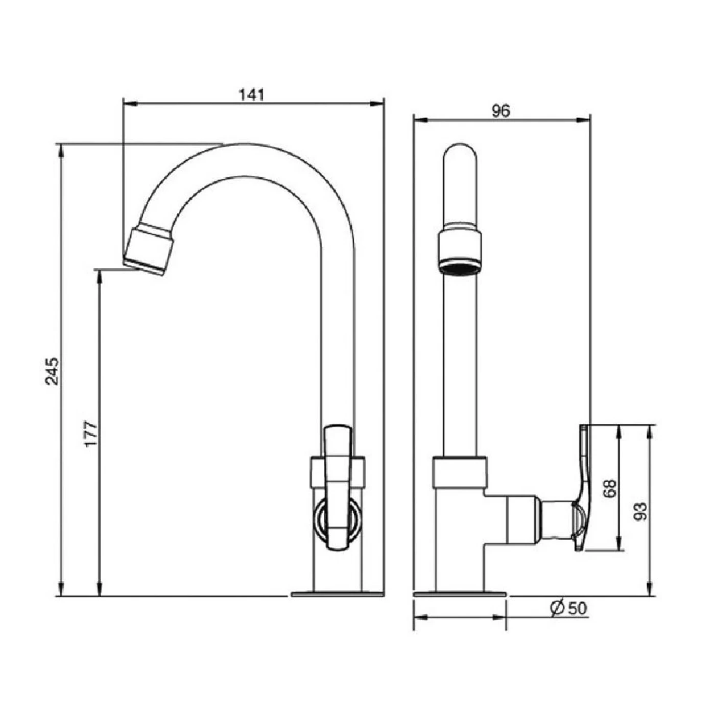 Tem dimensão 24,5cm de altura e 14,1cm de profundidade, com mecanismo de vedação cerâmica e válvula com 1/4 de volta.
