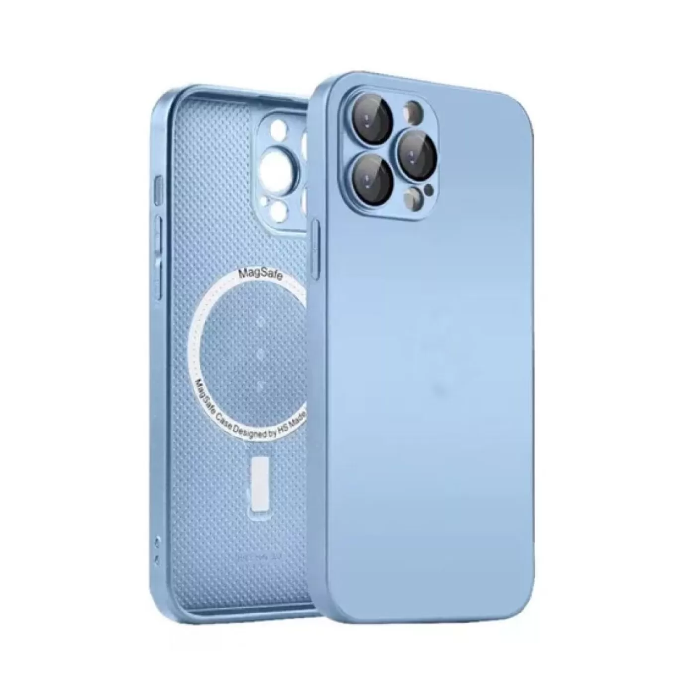 Inovação Refletida: O Elegante Capa de Vidro Fosco Azul Sierra para iPhone 14 Pro