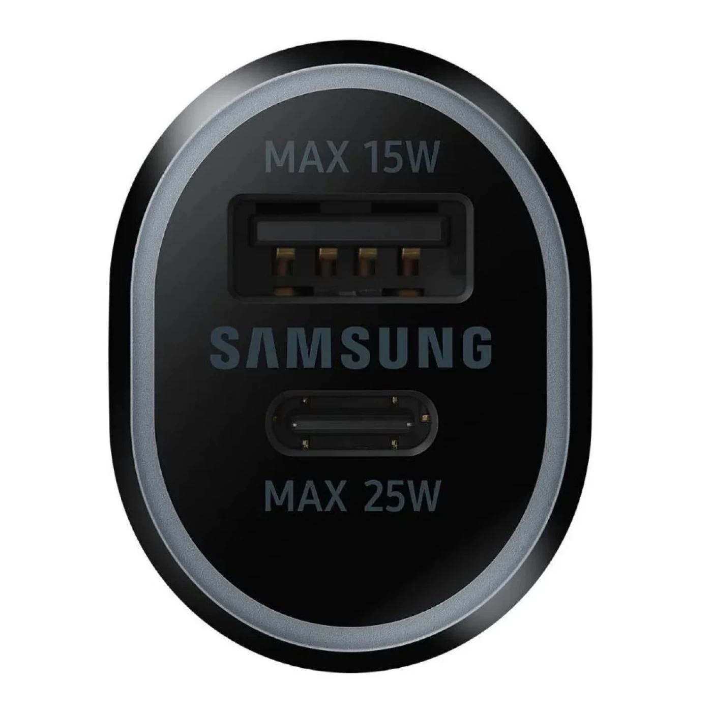 • O Carregador veicular Samsung, possui função carregamento Super Rápido 25W SFC 2.0, podendo carregar até dois aparelhos ao mesmo tempo
