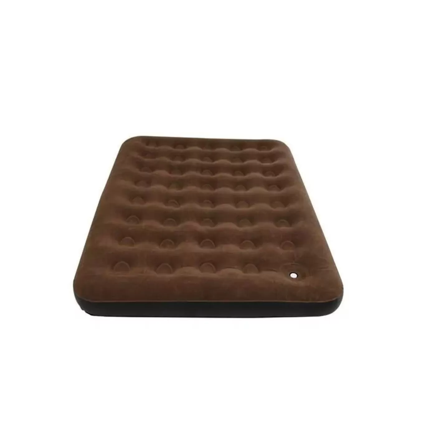 Fabricado com material resistente de alta qualidade e superfície aveludada, que evita que o lençol ou saco de dormir escorregue, proporcionando uma noite de sono mais tranquila. Possui inflador de pé prático e com alta vazão, permitindo que seja inflado rapidamente, e kit de reparo para eventuais necessidades.