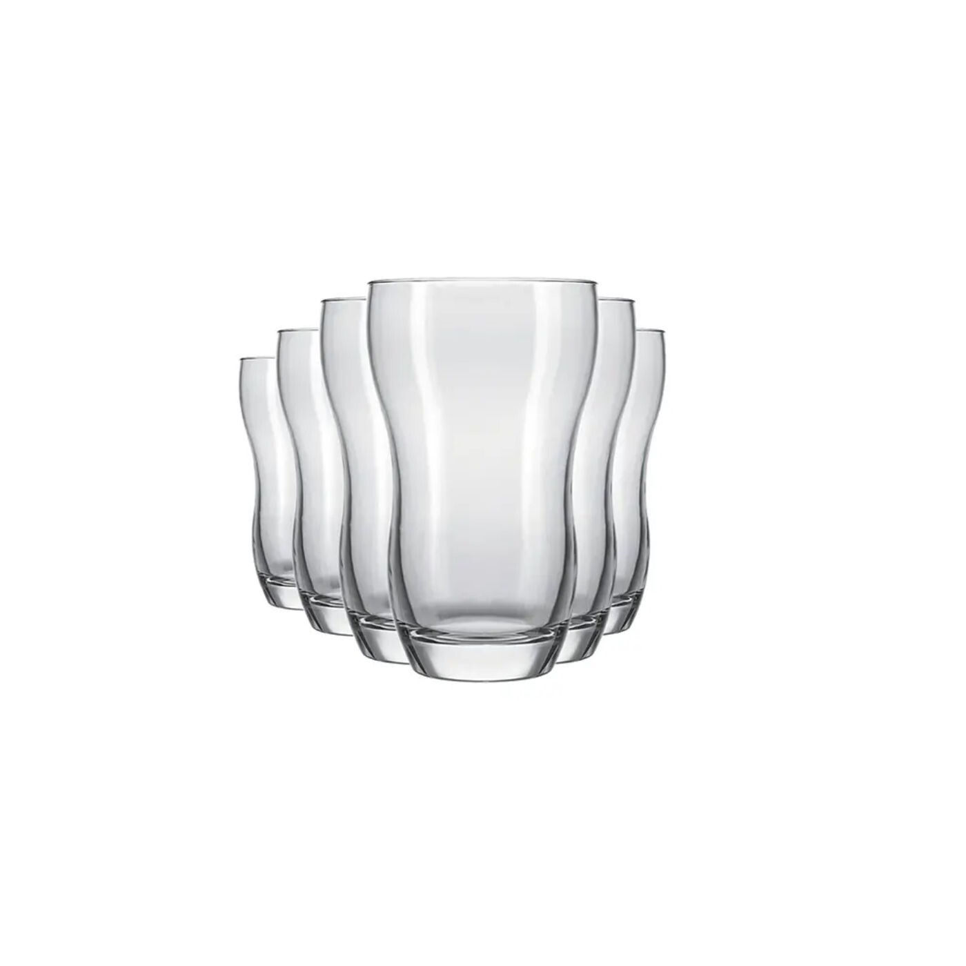Conjunto de copos Long Drink modelo Samba, da marca Nadir, fabricados em vidro resistente, ideais para bebidas geladas no dia a dia ou ocasiões especiais. Produto durável, fácil de limpar e com capacidade de 410ml por copo.