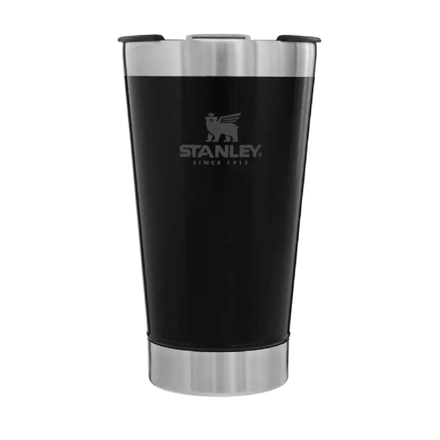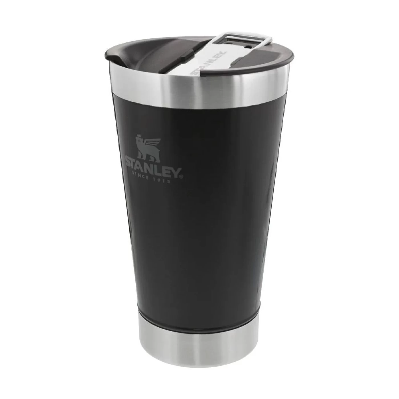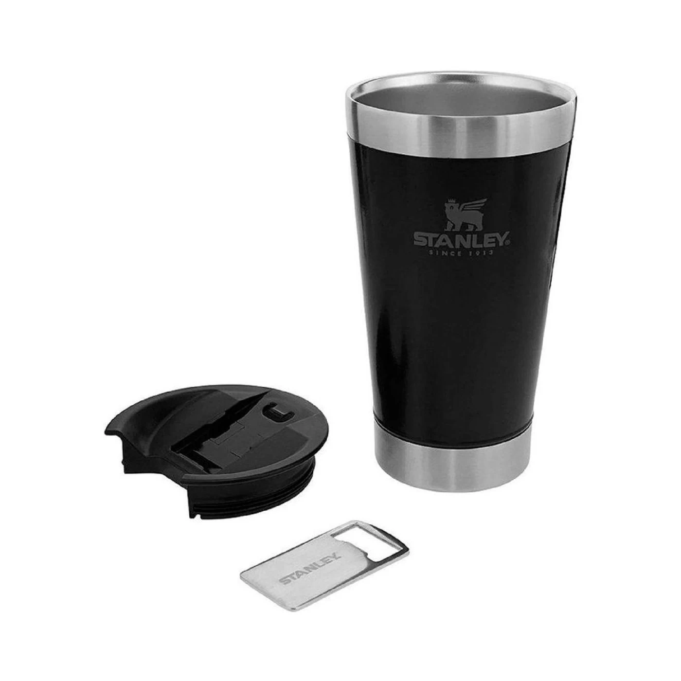 Para criar uma experiencia completa, o copo termico de cerveja da Stanley possui uma tampa contra derramamento e sujeiras, com um abridor de garrafas acoplado.