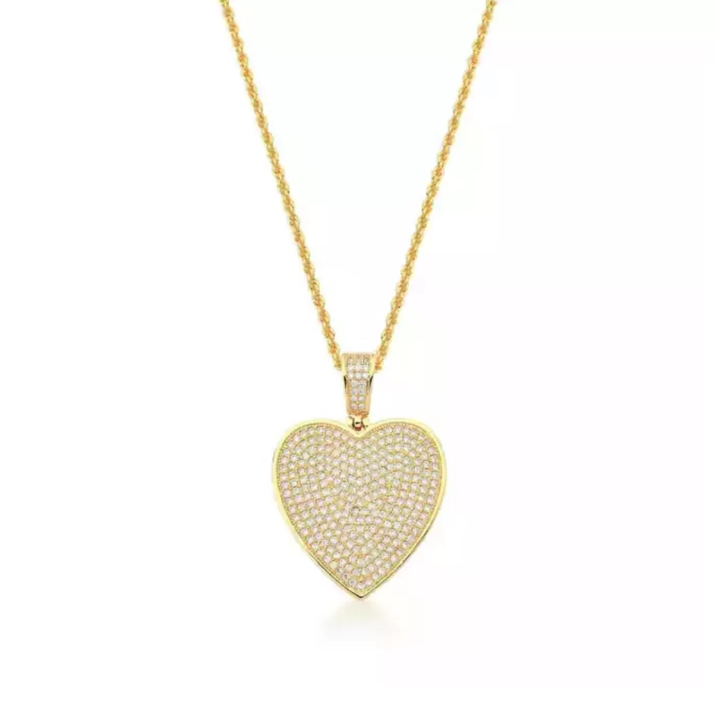 Corrente banhada a ouro em malha cordão baiano com pingente de coração com zircônias brancas. Peças com o tema de coração, são clássicas que nunca saem de moda, transmitindo muito sentimento e emoção, o coração é uma peça atemporal aposte nelas sem medo de errar!