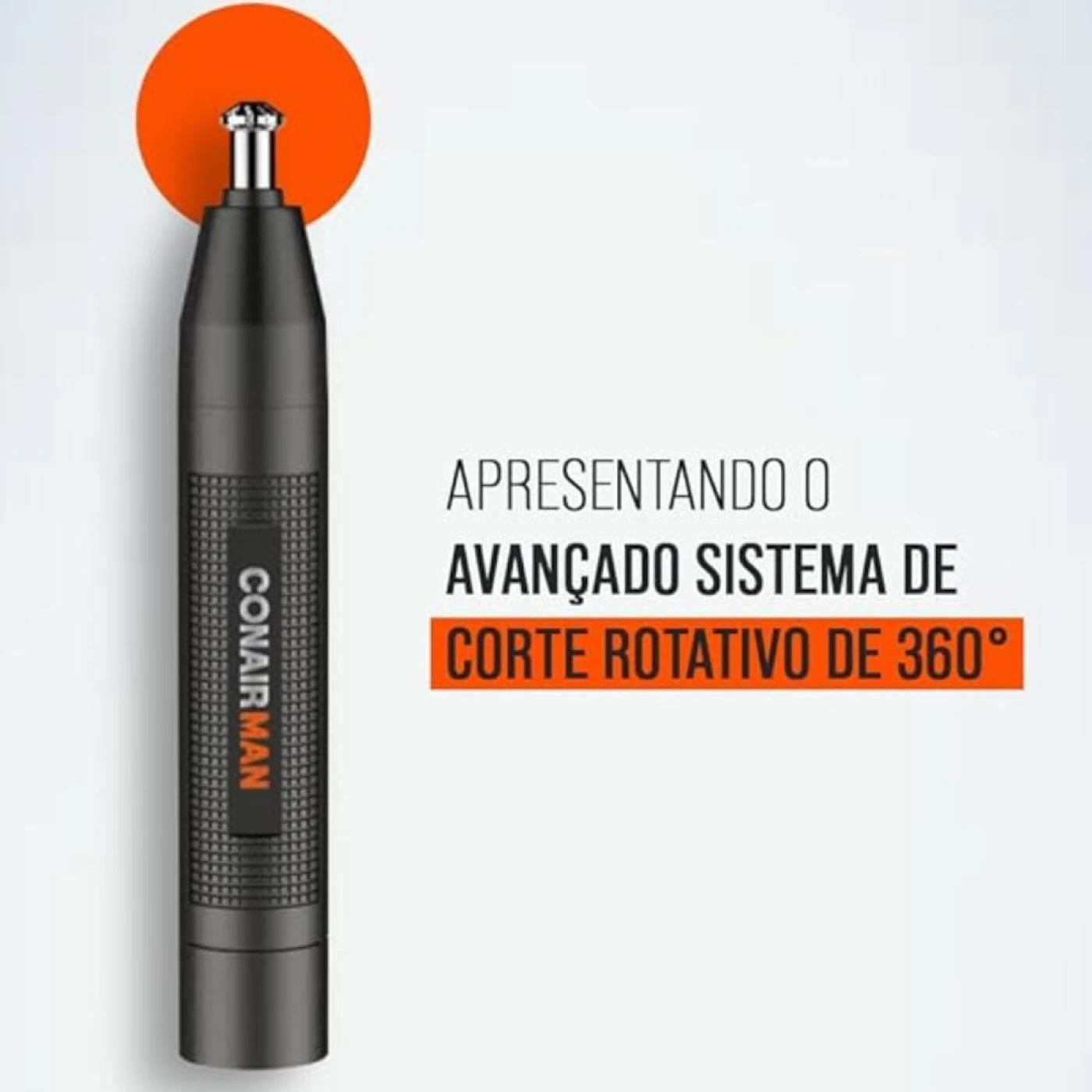 APARADOR DE PELOS MASCULINO. O aparador de pelos de ouvido e nariz a pilhas ConairMAN apresenta um design compacto e altamente portátil, ideal para quem está sempre em movimento.
