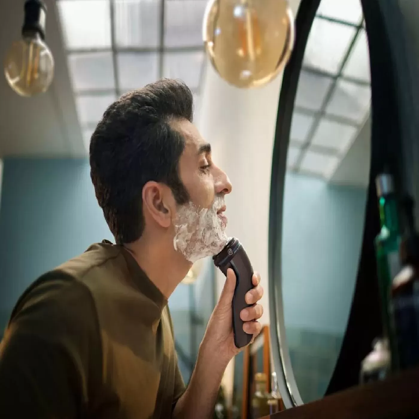 O barbeador elétrico de uso seco e molhado Philips série 3000 proporciona um barbear confortável e limpo, mesmo em peles sensíveis. As cabeças 5D Pivot e Flex, as 27 lâminas PowerCut auto afiadoras para uso seco ou molhado, garantem sempre resultados excelentes e confiáveis. Em apenas uma hora, a bateria durável de íon de lítio fica totalmente carregada para você se barbear por 60 minutos. Está com pressa? Uma carga rápida de 5 minutos fornece energia suficiente para você se barbear uma vez. Refine e defina o bigode e as costeletas com o aparador retrátil e complete seu visual com facilidade.