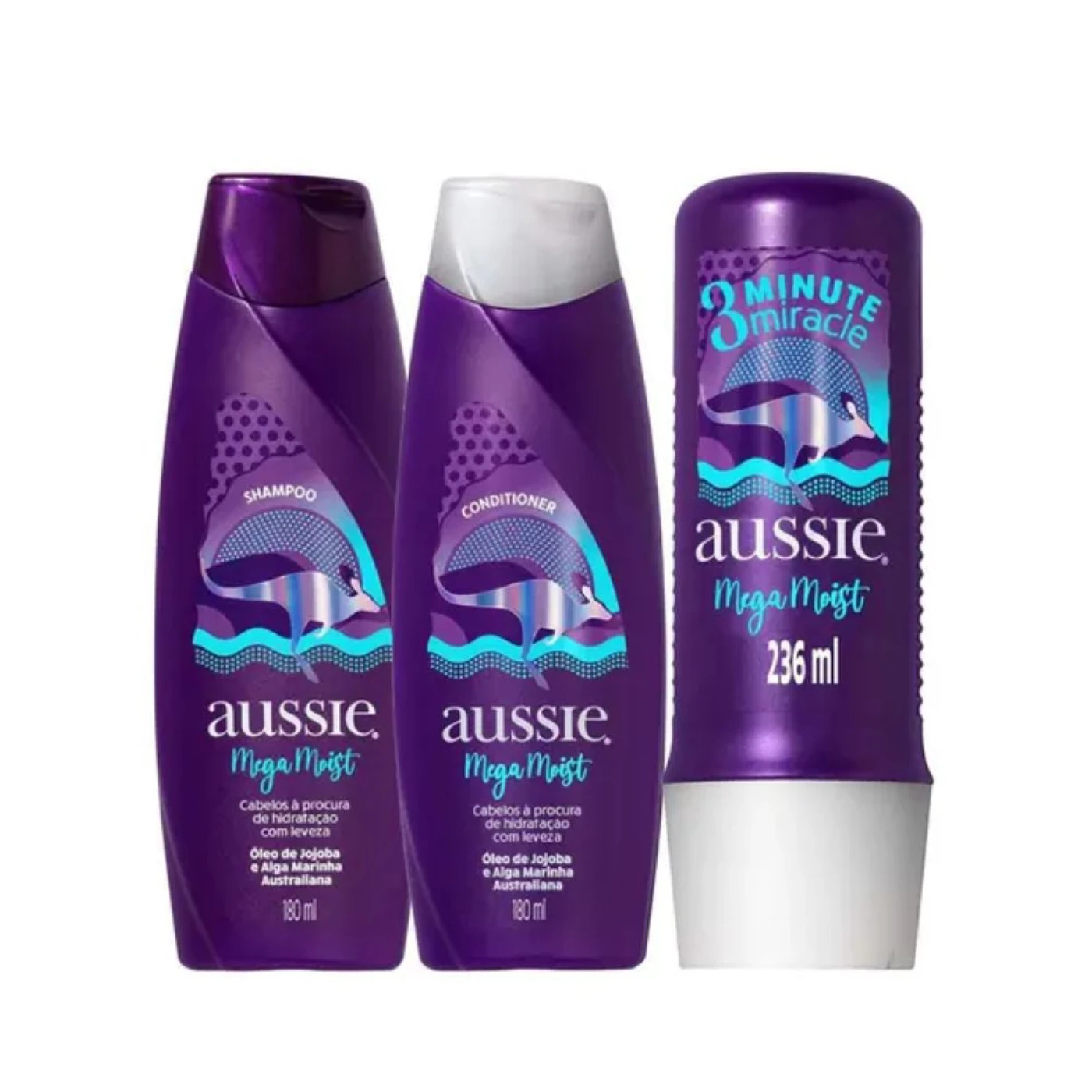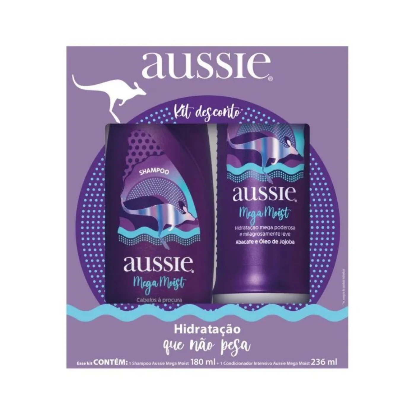 O kit Aussie Mega Moist é composto por um shampoo de 180ml e um condicionador de 236ml, especialmente desenvolvidos para proporcionar hidratação intensa aos cabelos secos ou ressecados. Com fórmula enriquecida com óleo de jojoba, algas marinhas e extrato de aloe vera, o combo limpa profundamente enquanto nutre os fios, deixando-os mais macios, brilhantes e fáceis de pentear.