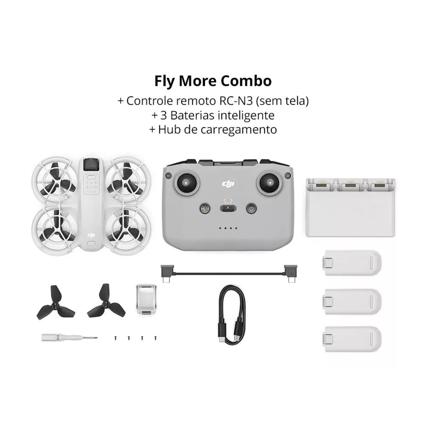 Inclui a aeronave, um controle remoto RC-N3, três Baterias Inteligentes, um Carregador com múltiplas entradas de duas vias e muito mais!