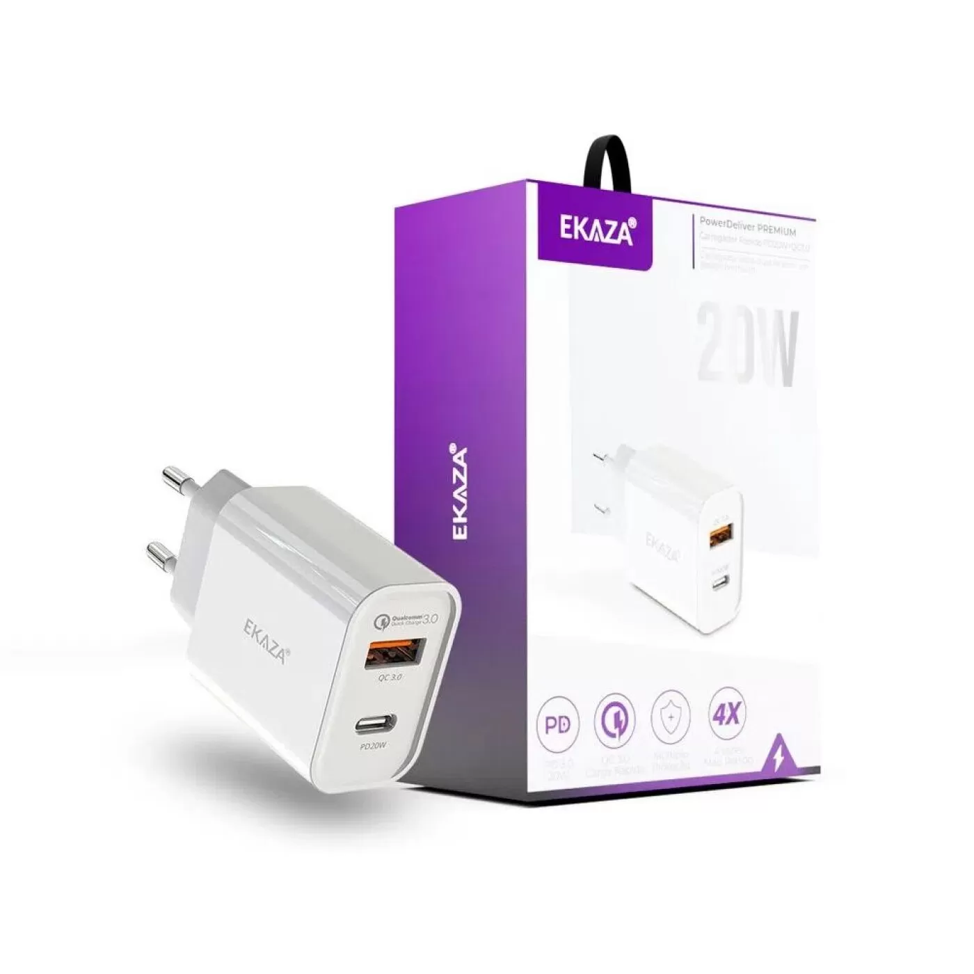 Carregador Super Rapido Ekaza PD20W QC3.0 USB USB-C