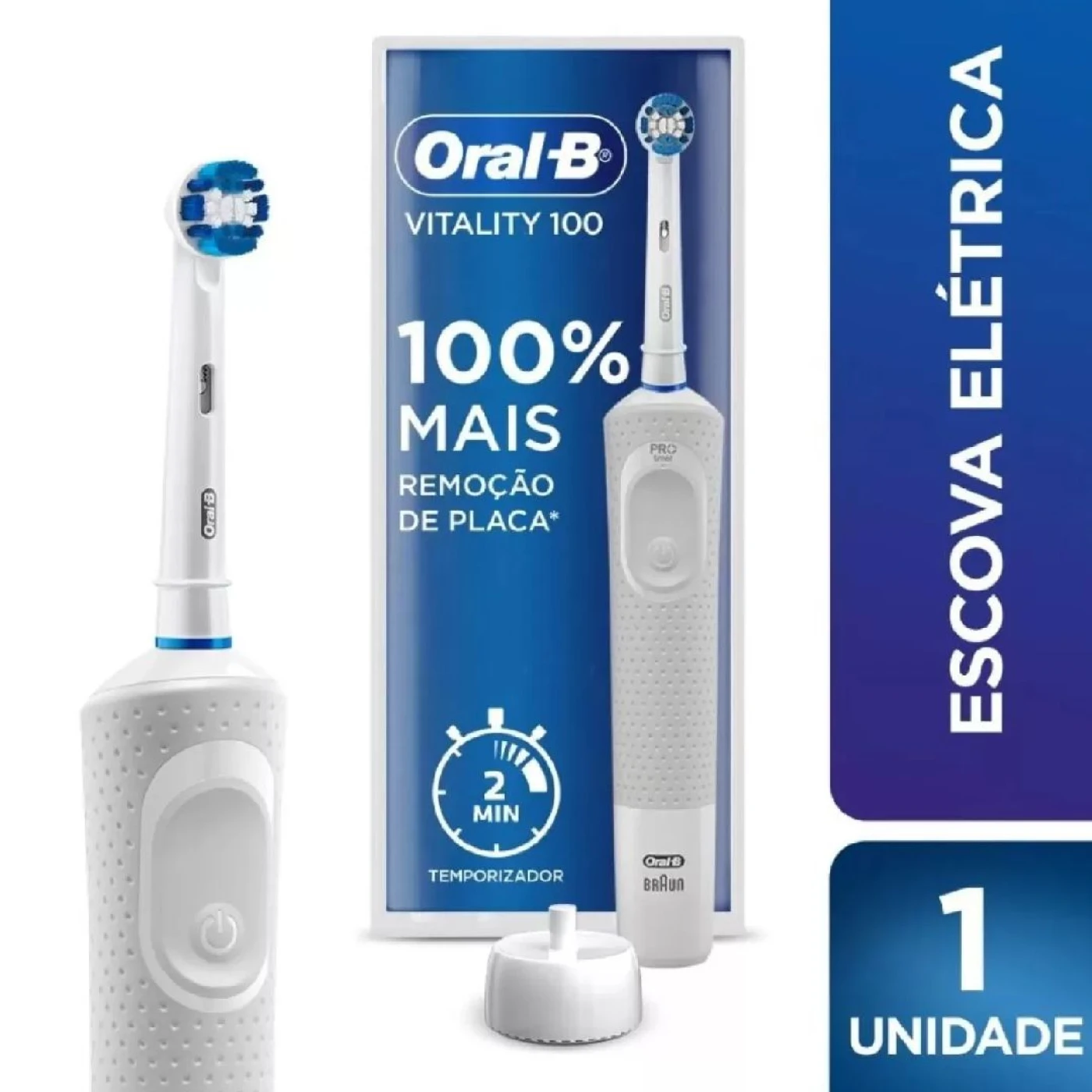 A Escova Elétrica Oral-B Vitality 100 Branca proporciona uma limpeza rápida e profunda com esforço reduzido. Com uma cabeça arredondada, oferece um sistema de limpeza 2D que oscila e rotaciona para uma sensação intensa de limpeza e gengivas mais saudáveis.