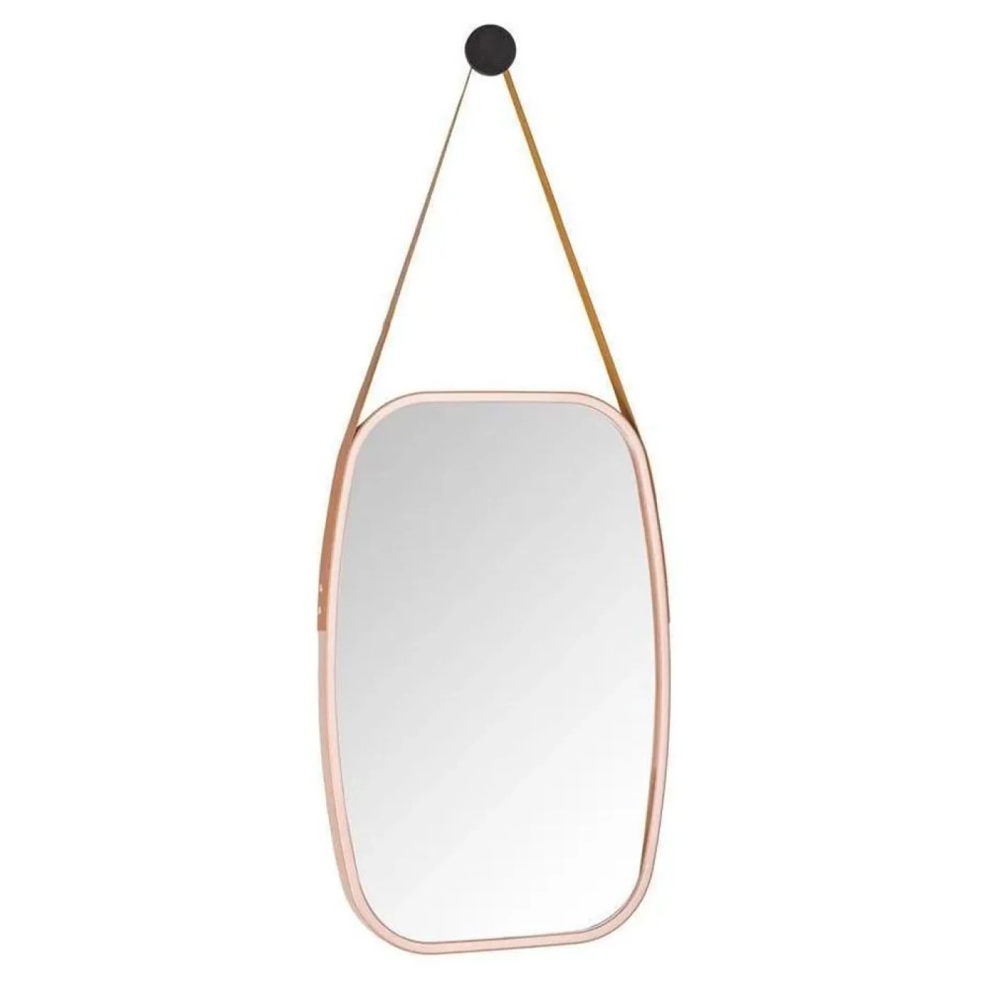 Material: Espelho, Plástico (moldura) e Couro sintético (alça).
