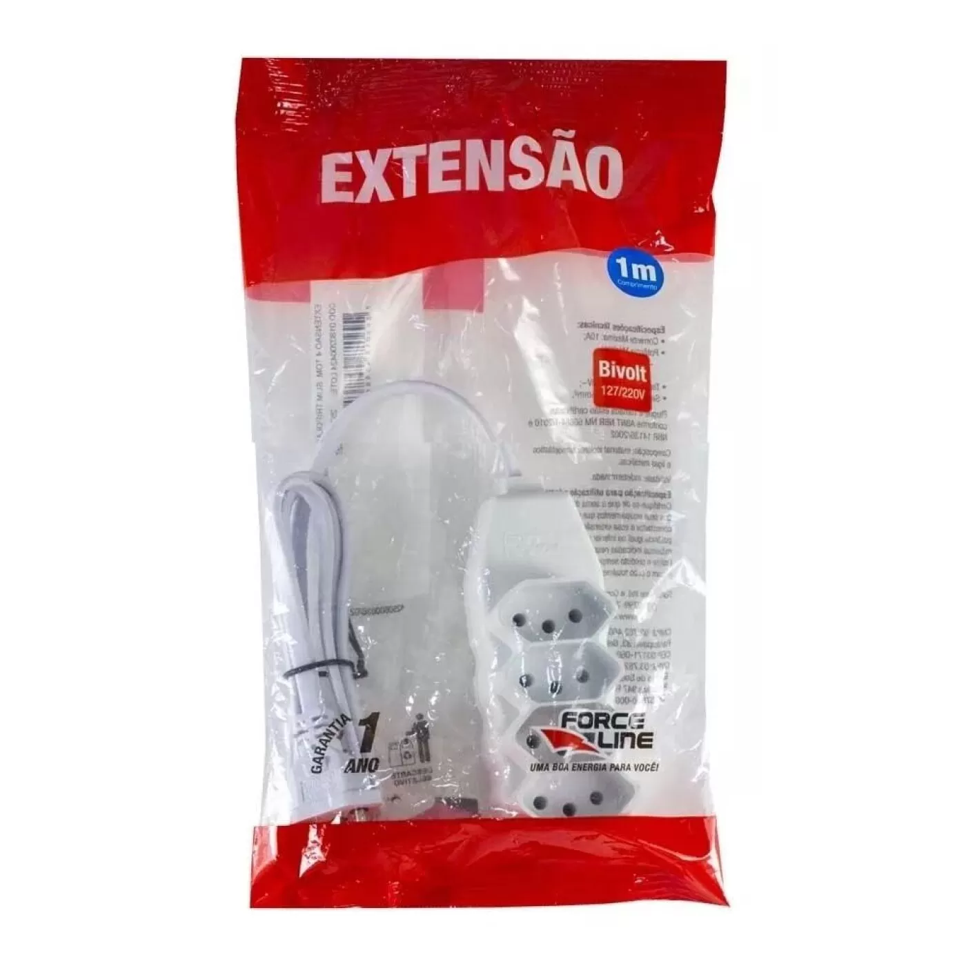 Extensão Tripolar 4 Tomadas 10A 1M Slim Branca - Force Line