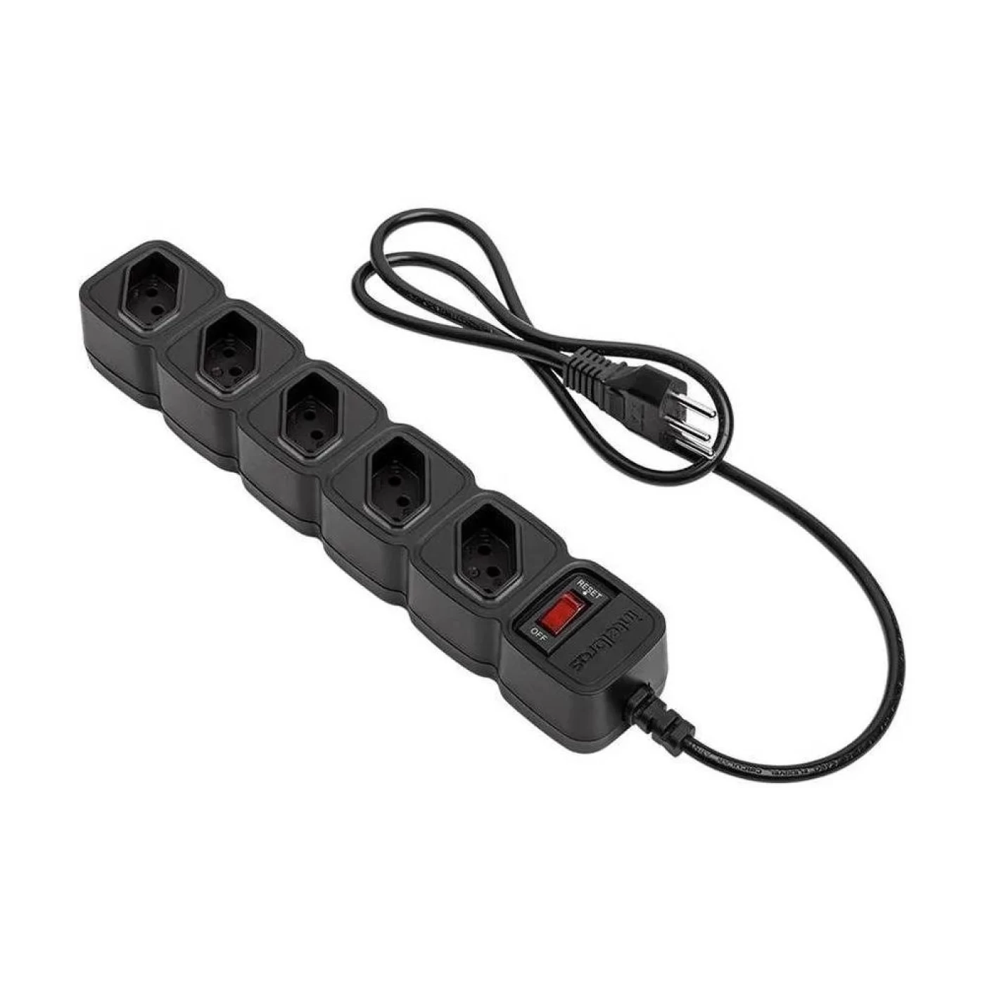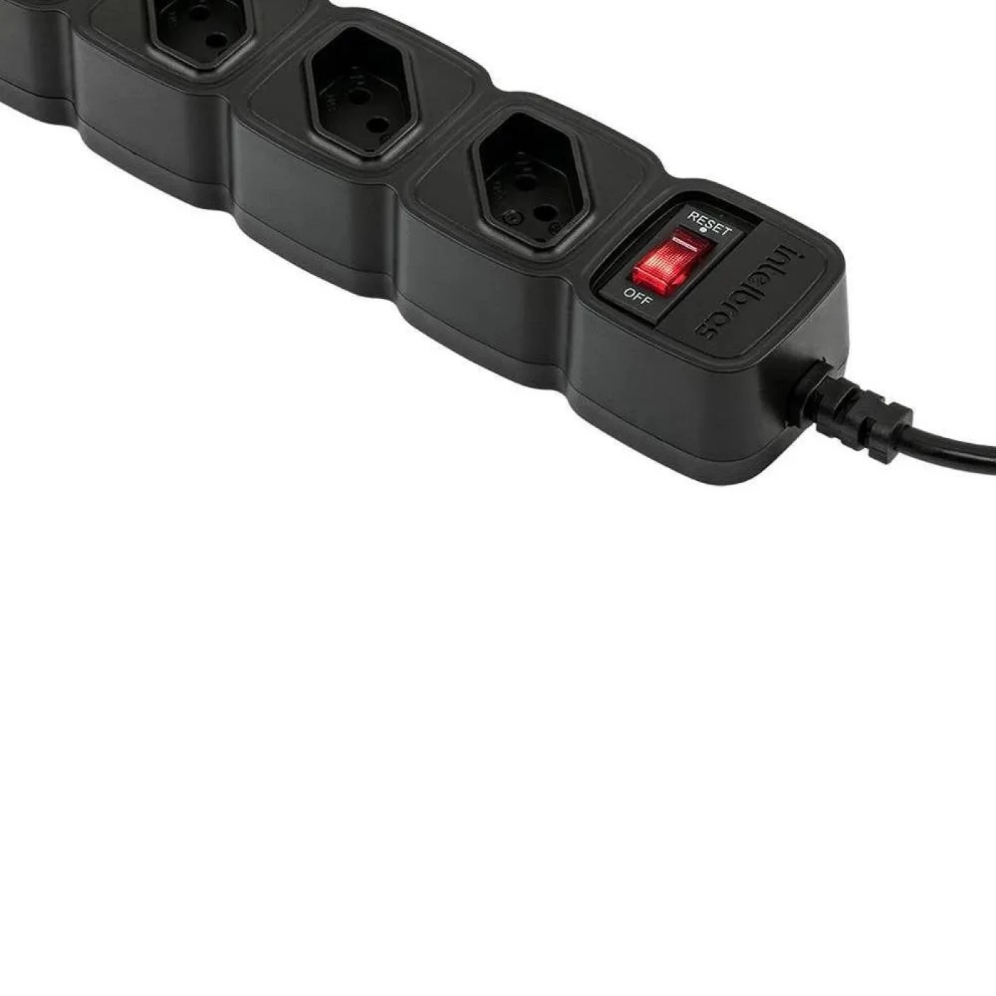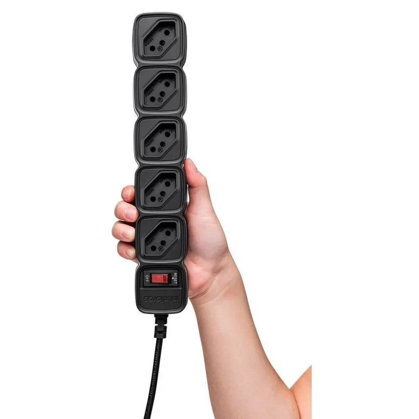 com dupla proteção composta por chave inteligente e varistor. Esse modelo possui como destaques o fato de possuir 5 tomadas para conectar equipamentos e ainda conta com chave liga/desliga