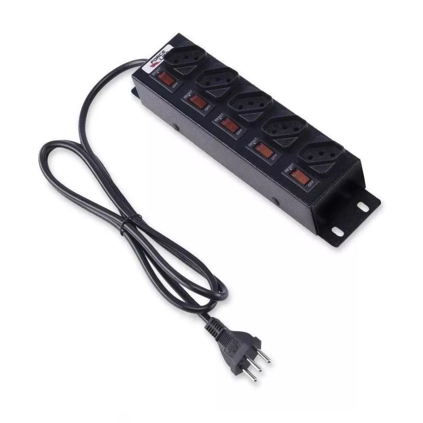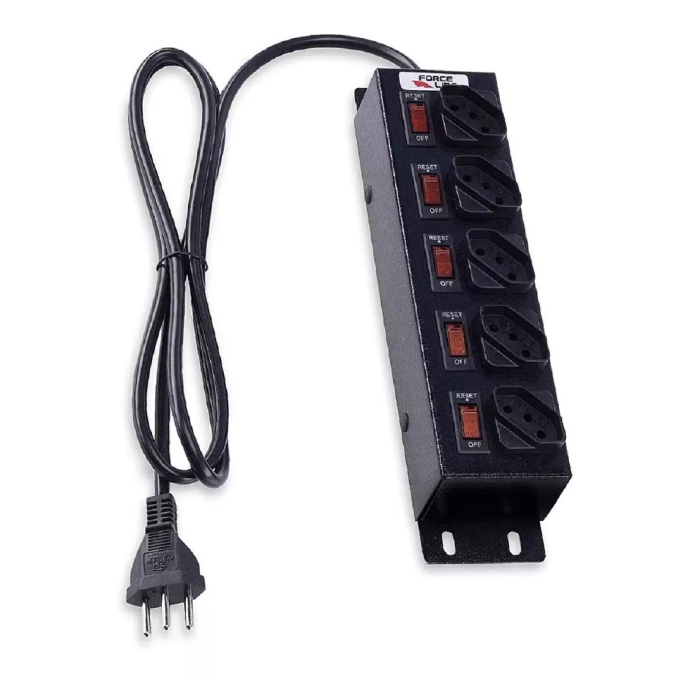Filtro de Linha com 5 Circuit Breaker 1,5m Preto Force Line Bivolt